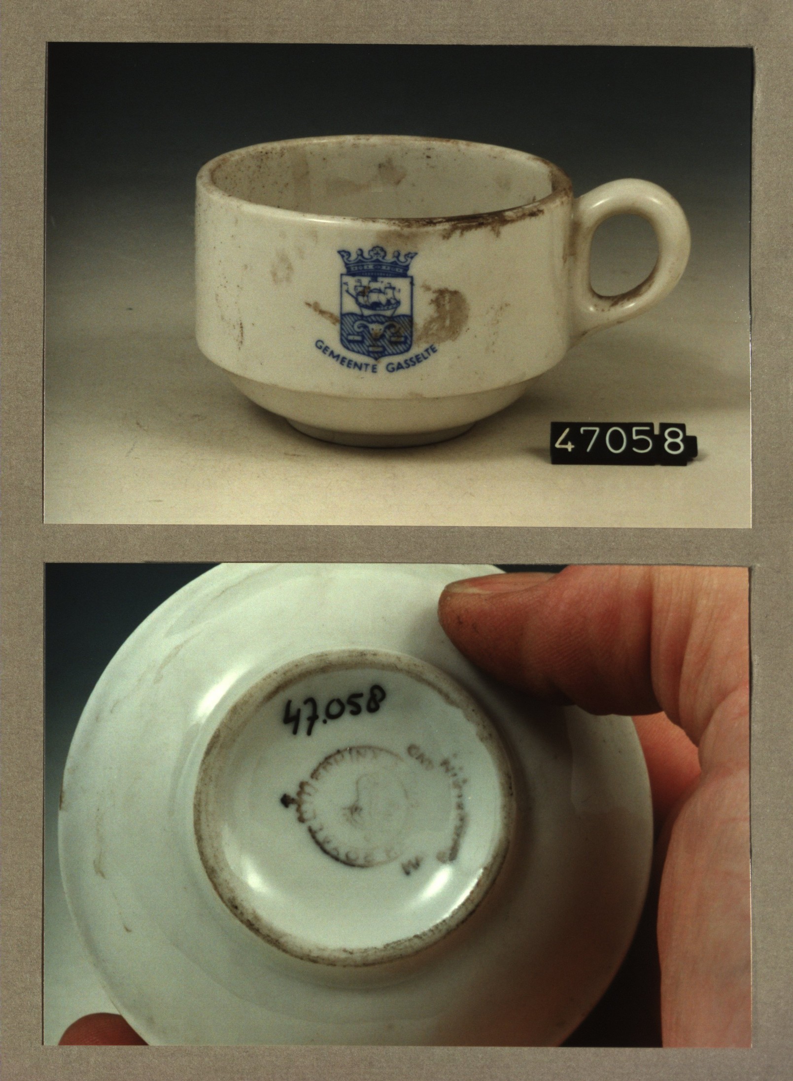 Kop met opschrift, model A met decor Gemeente Gasselte