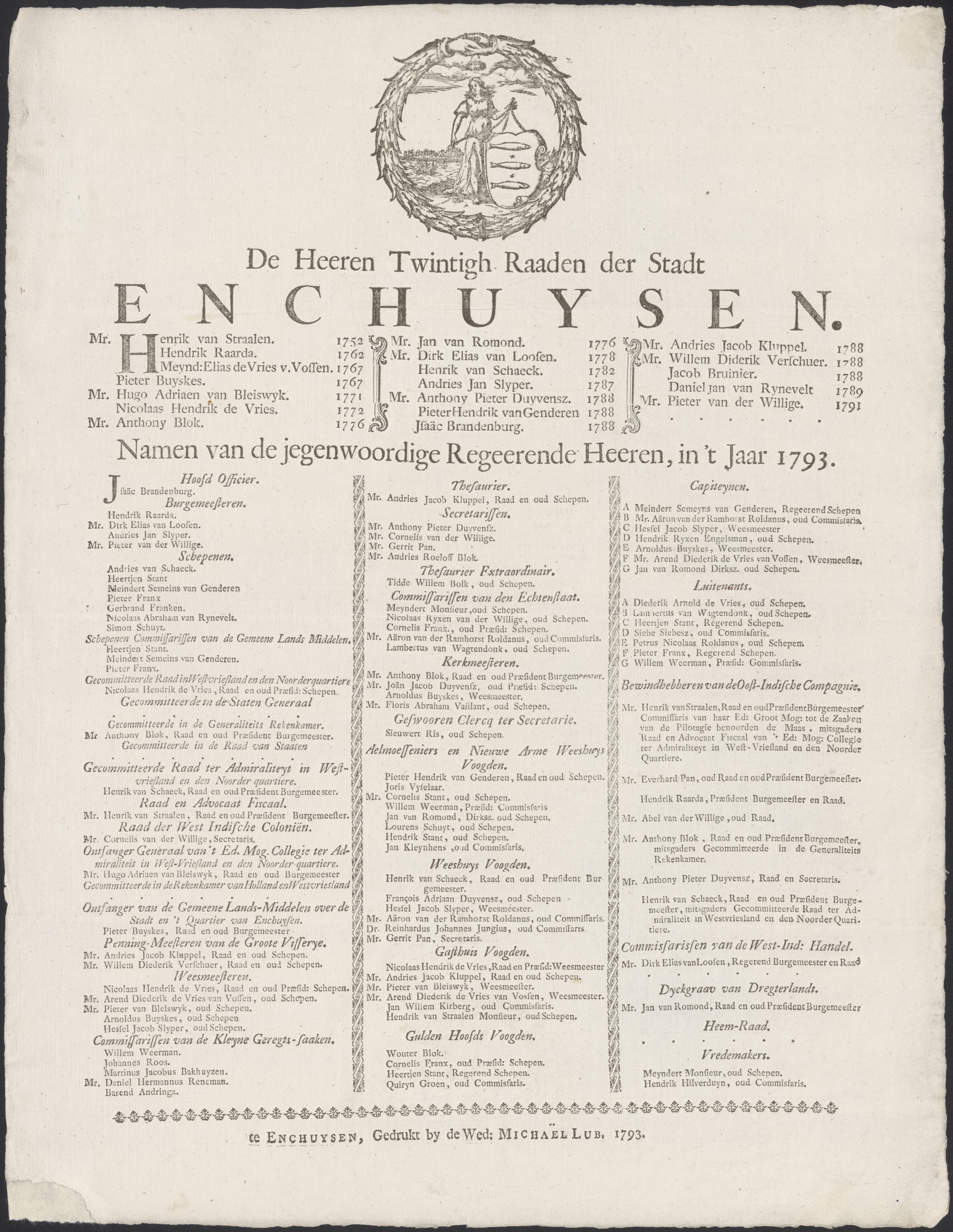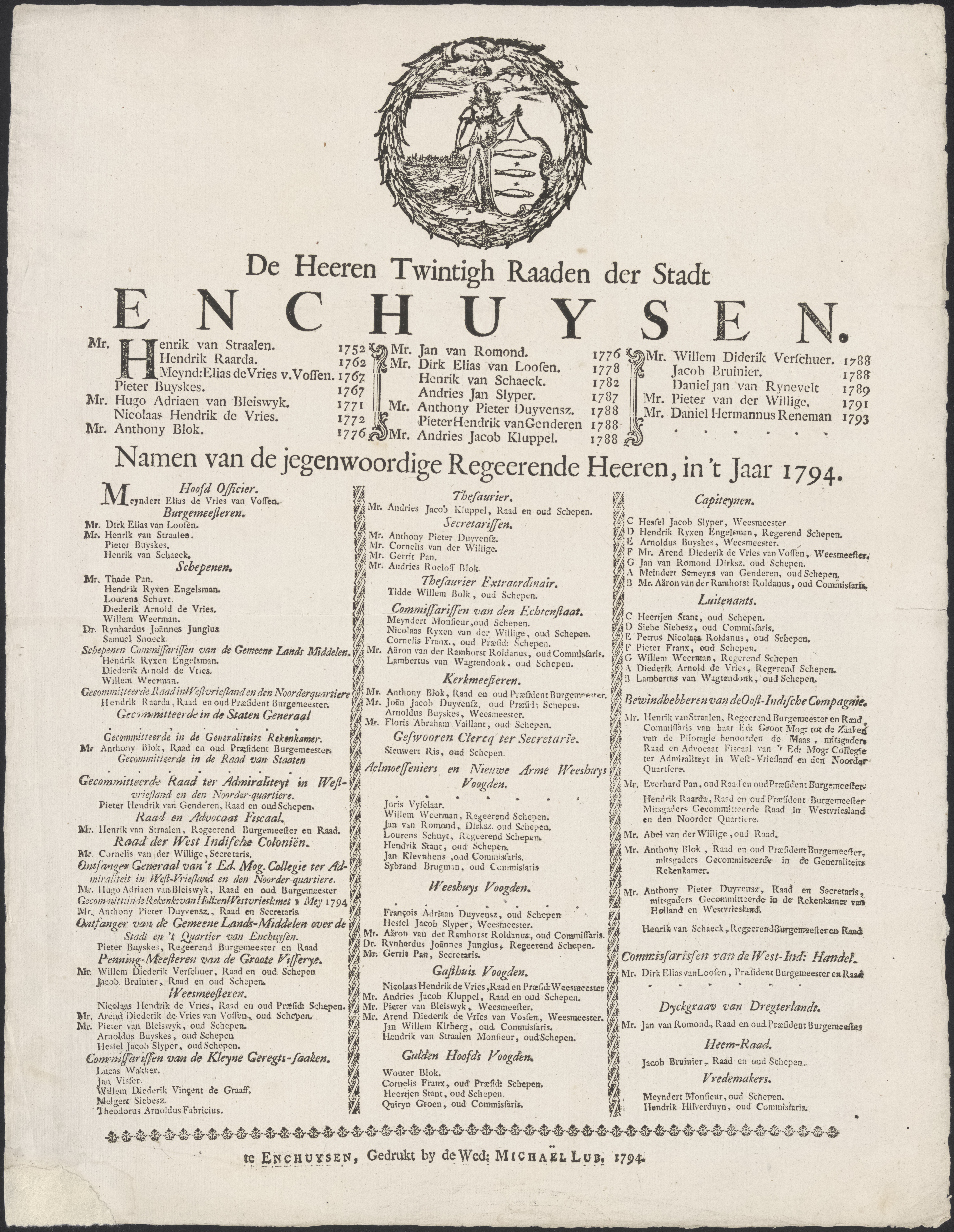 De Heeren Twintigh Raaden der Stadt Enchuysen