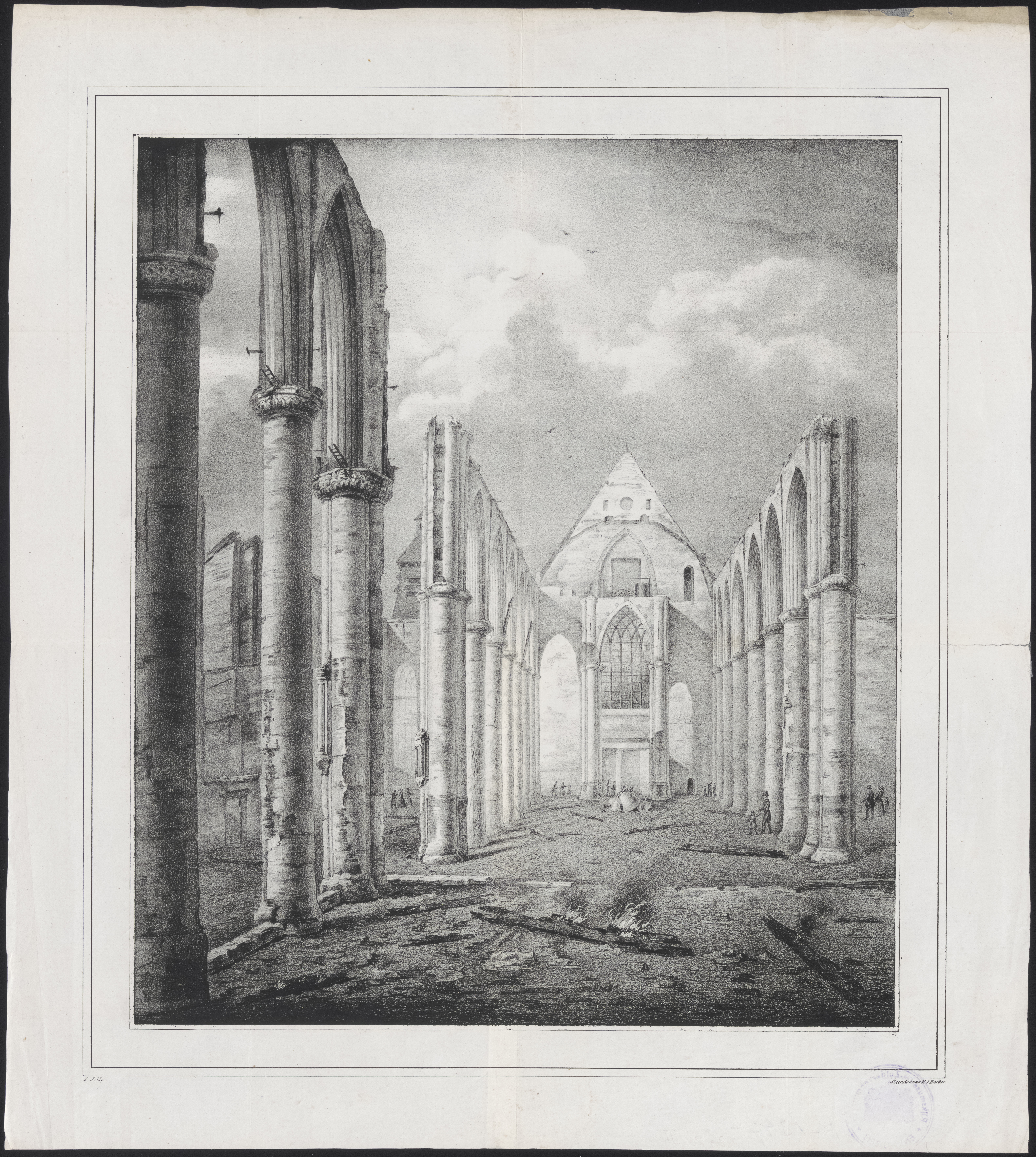 Restanten van de Groote Kerk in Hoorn, na de brand v...