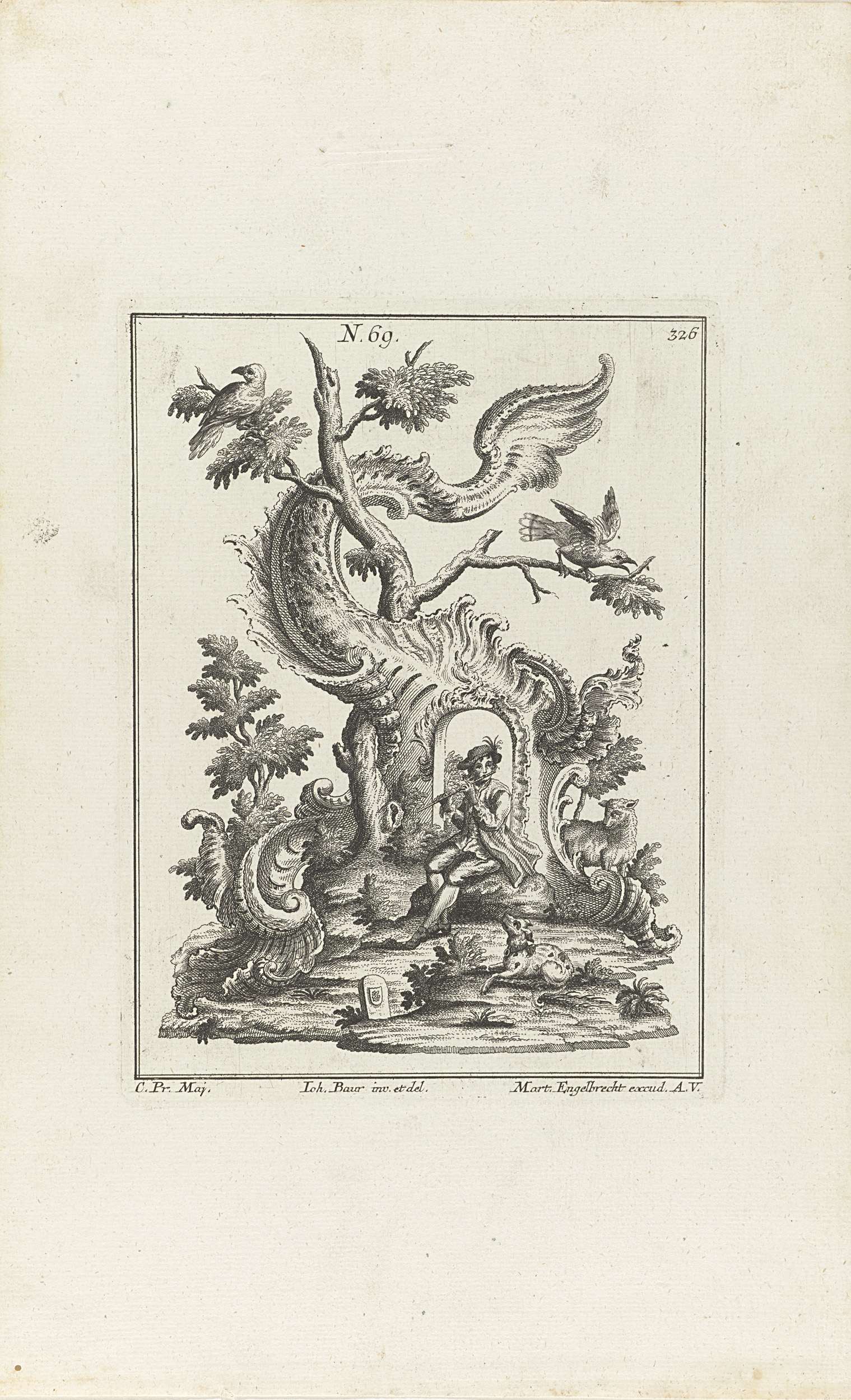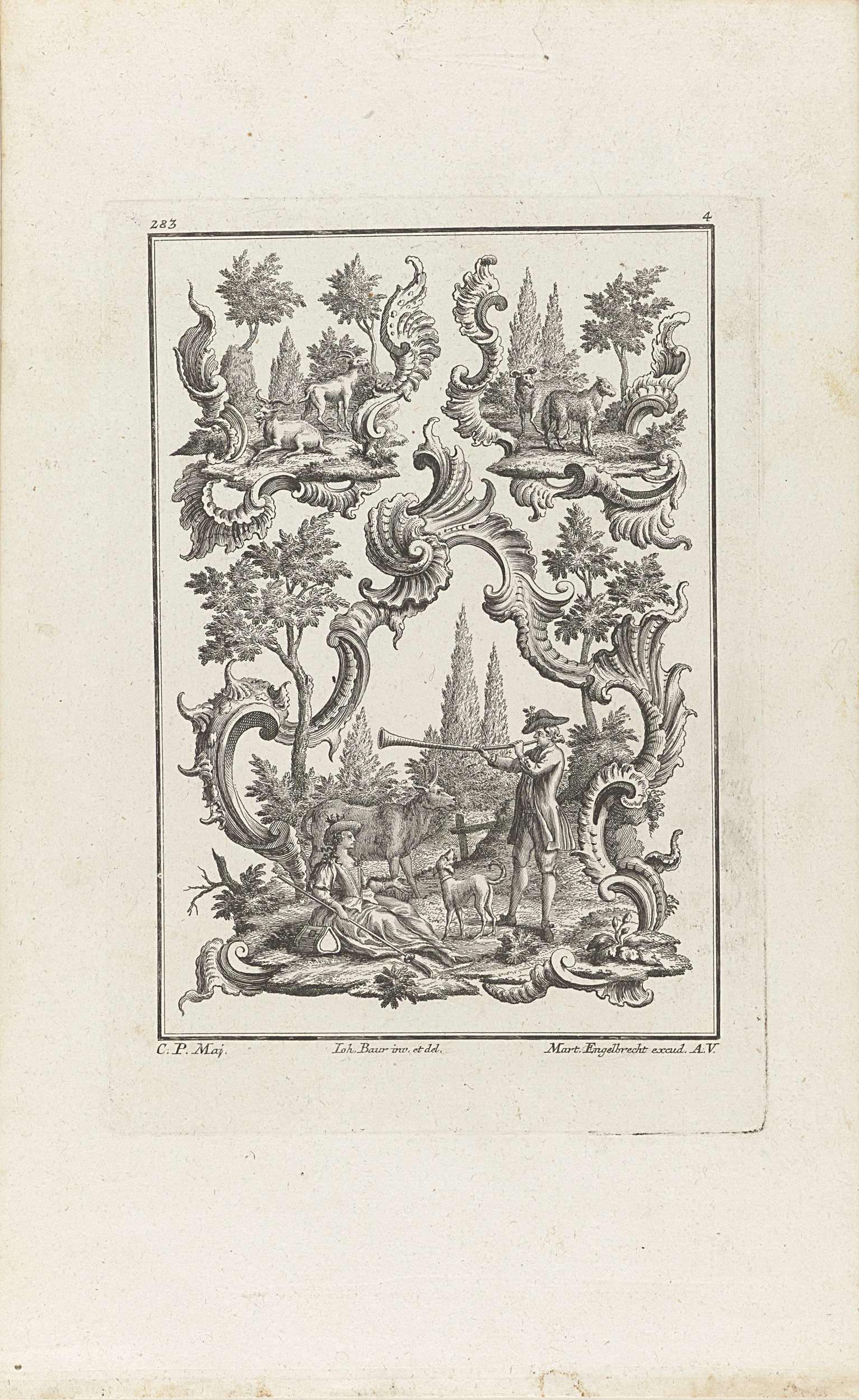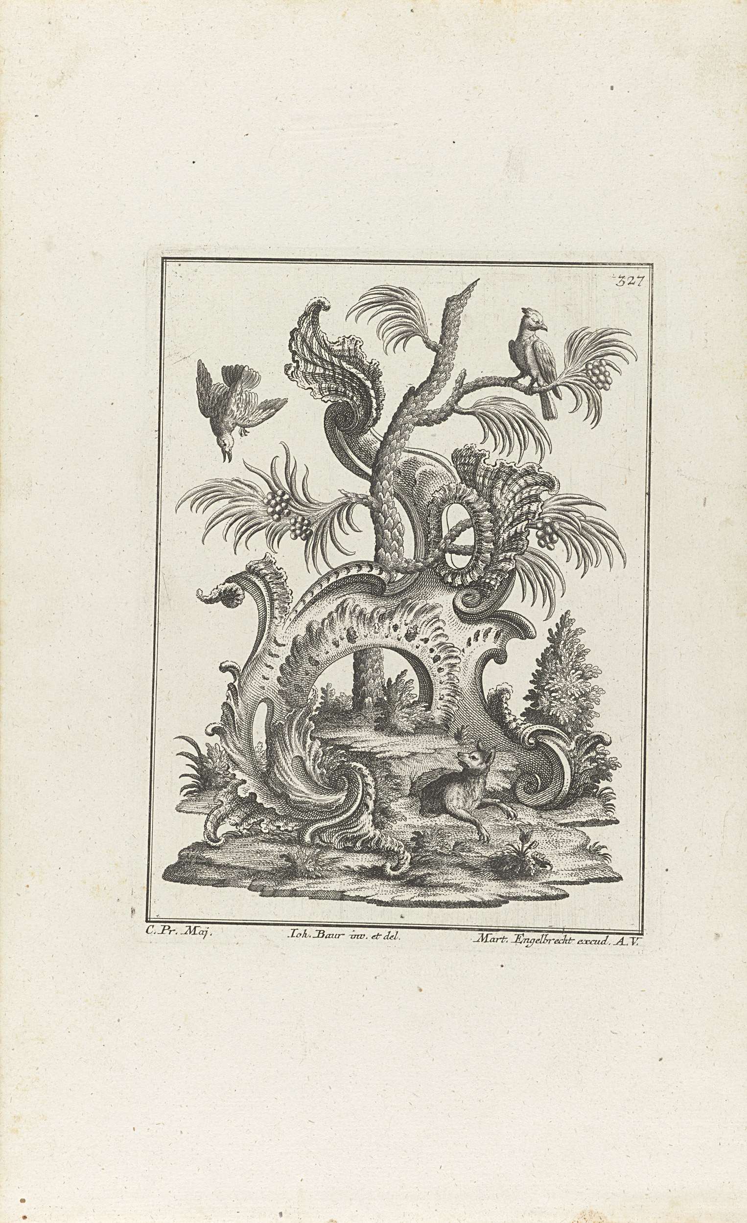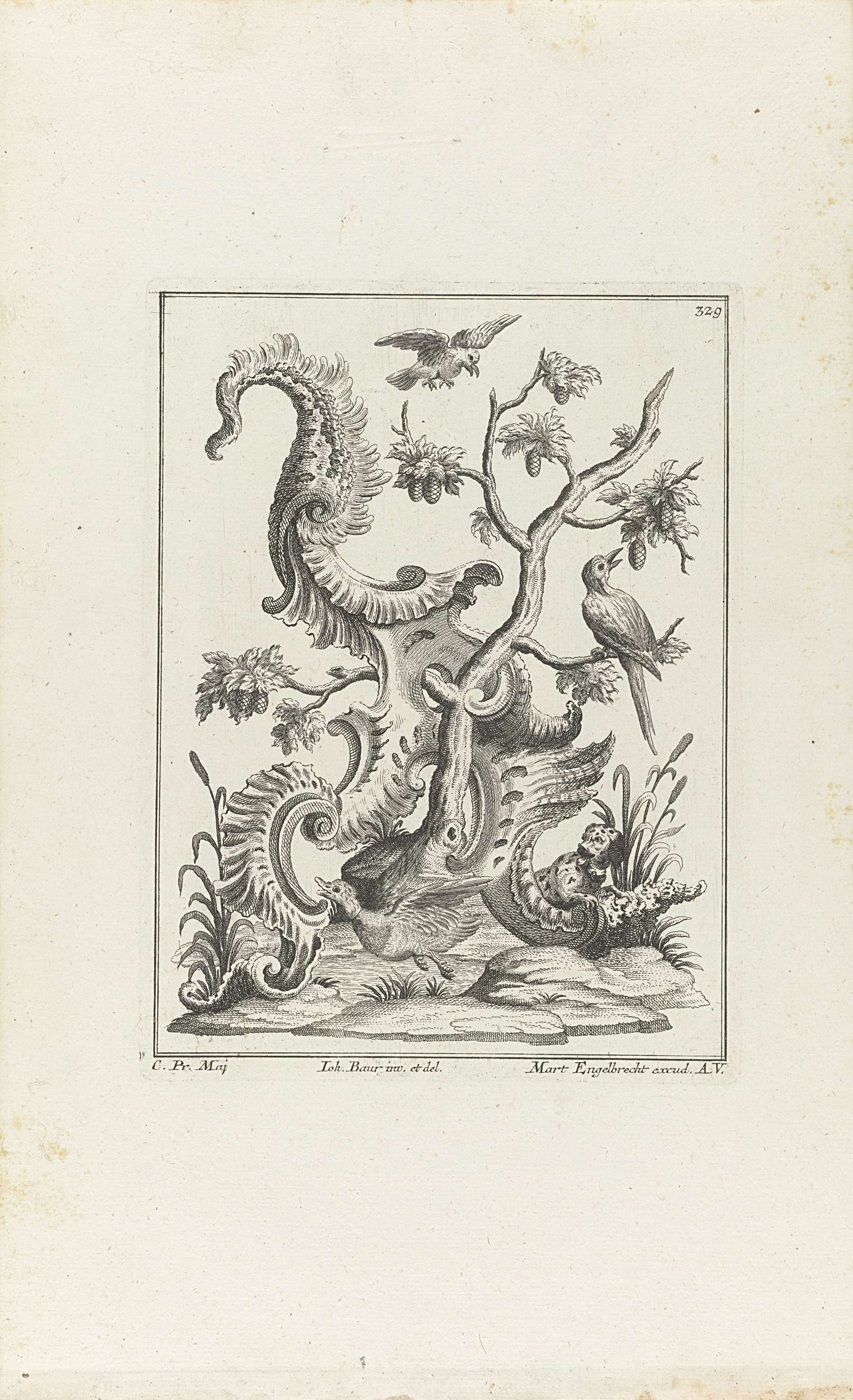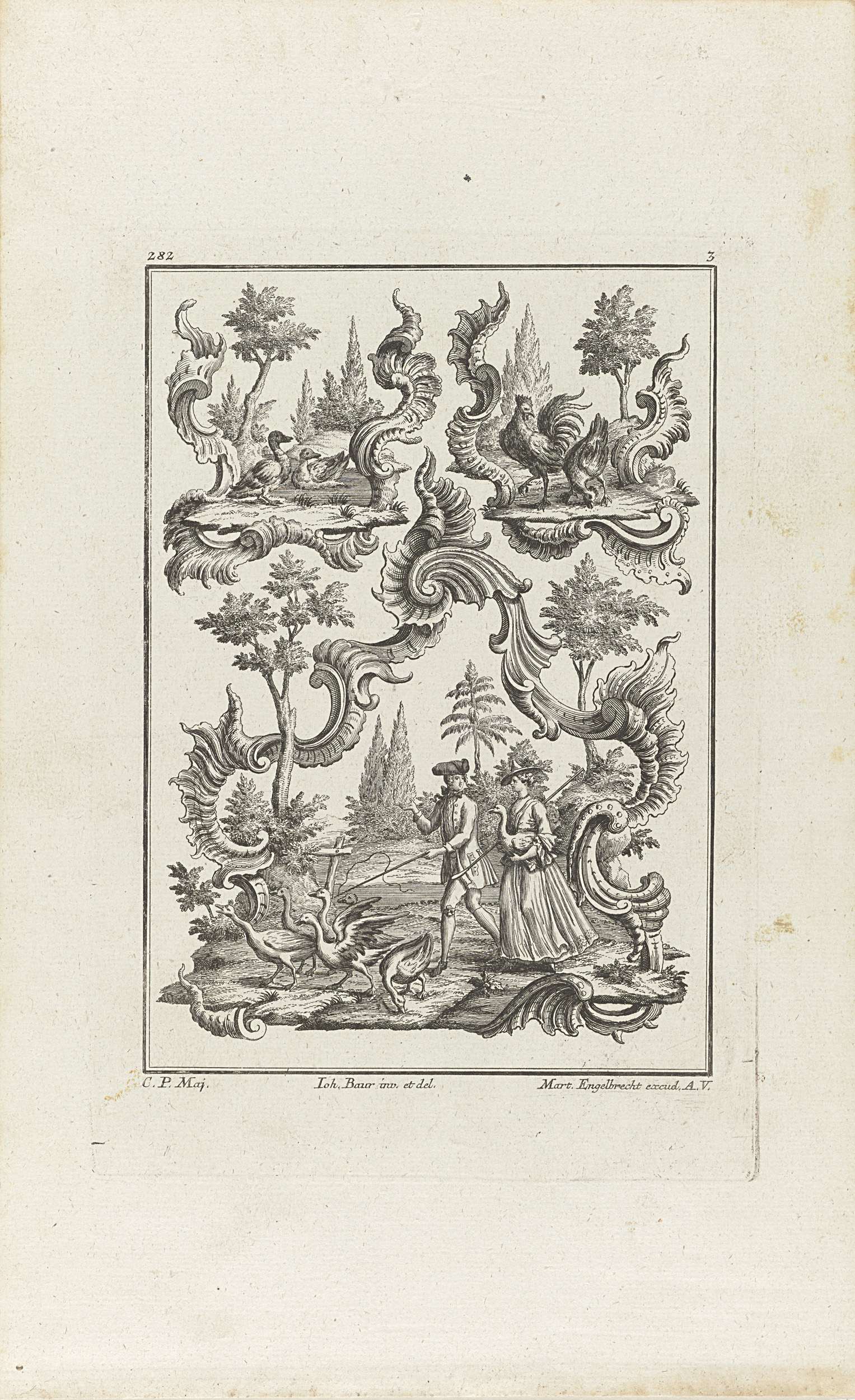 Rocaille met ganzenhoedend paar