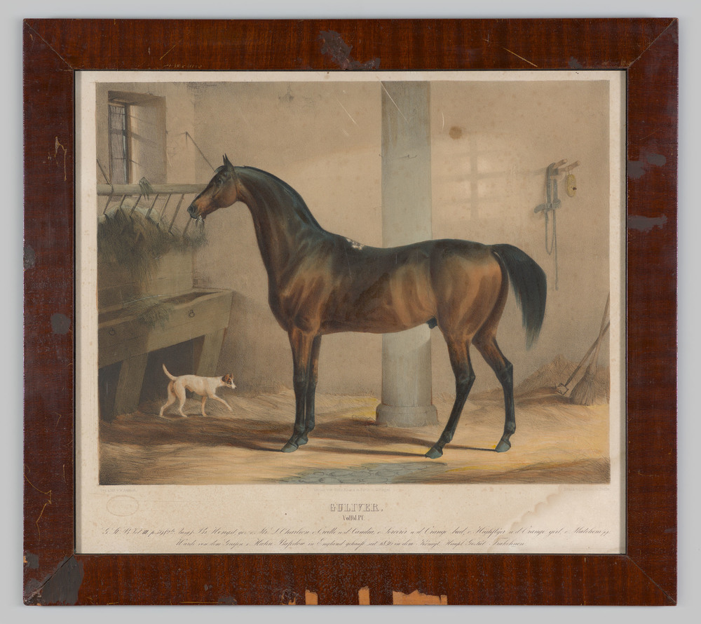 Paard en hond in de stal