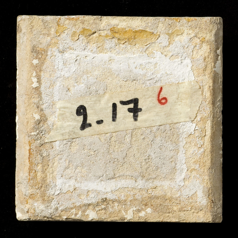 Tegel van keramiek, tinglazuur, gesprenkeld, voorste...