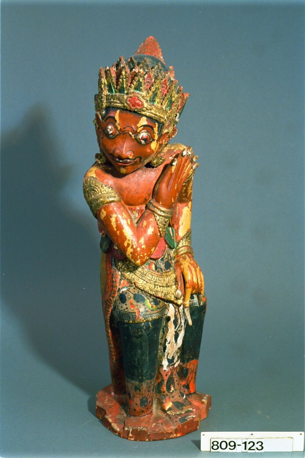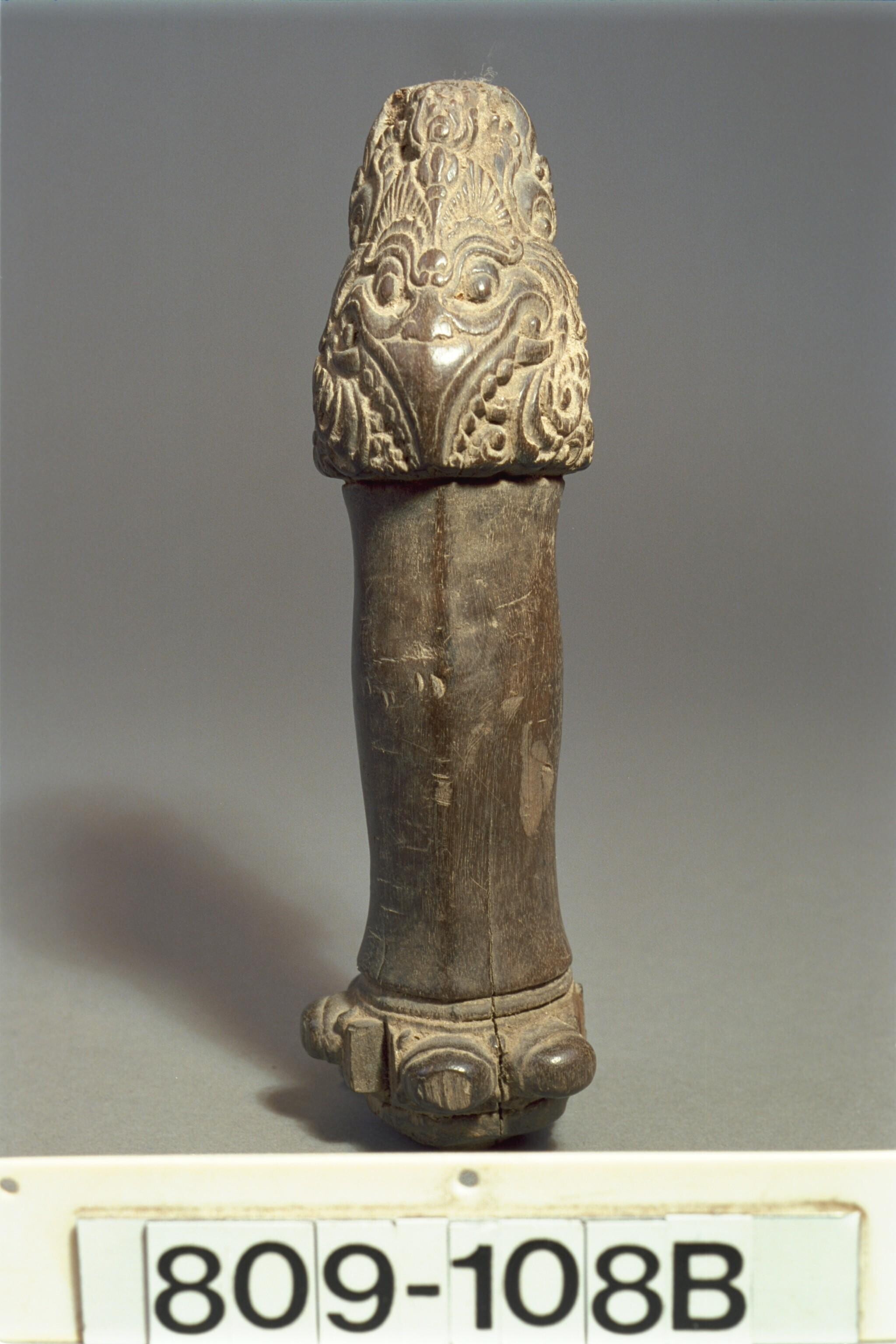 Wooden, carved kris holder representing Rama
