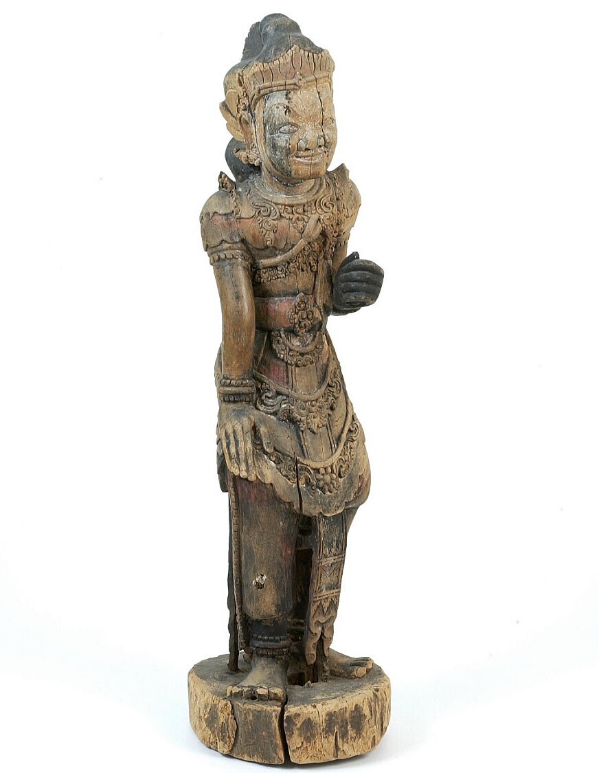 Houten vrouwenbeeld voorstellende Srikandi met vaas ...