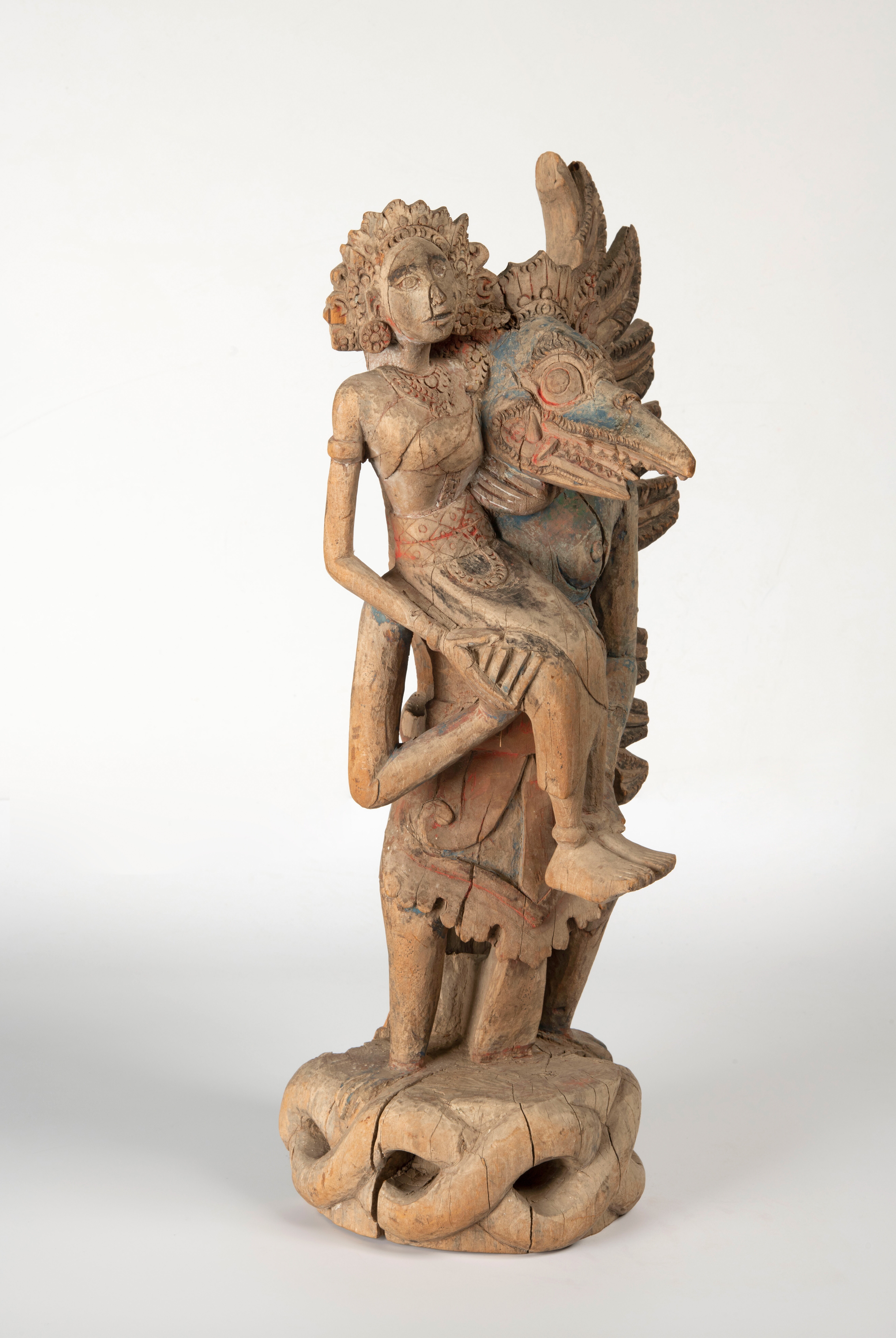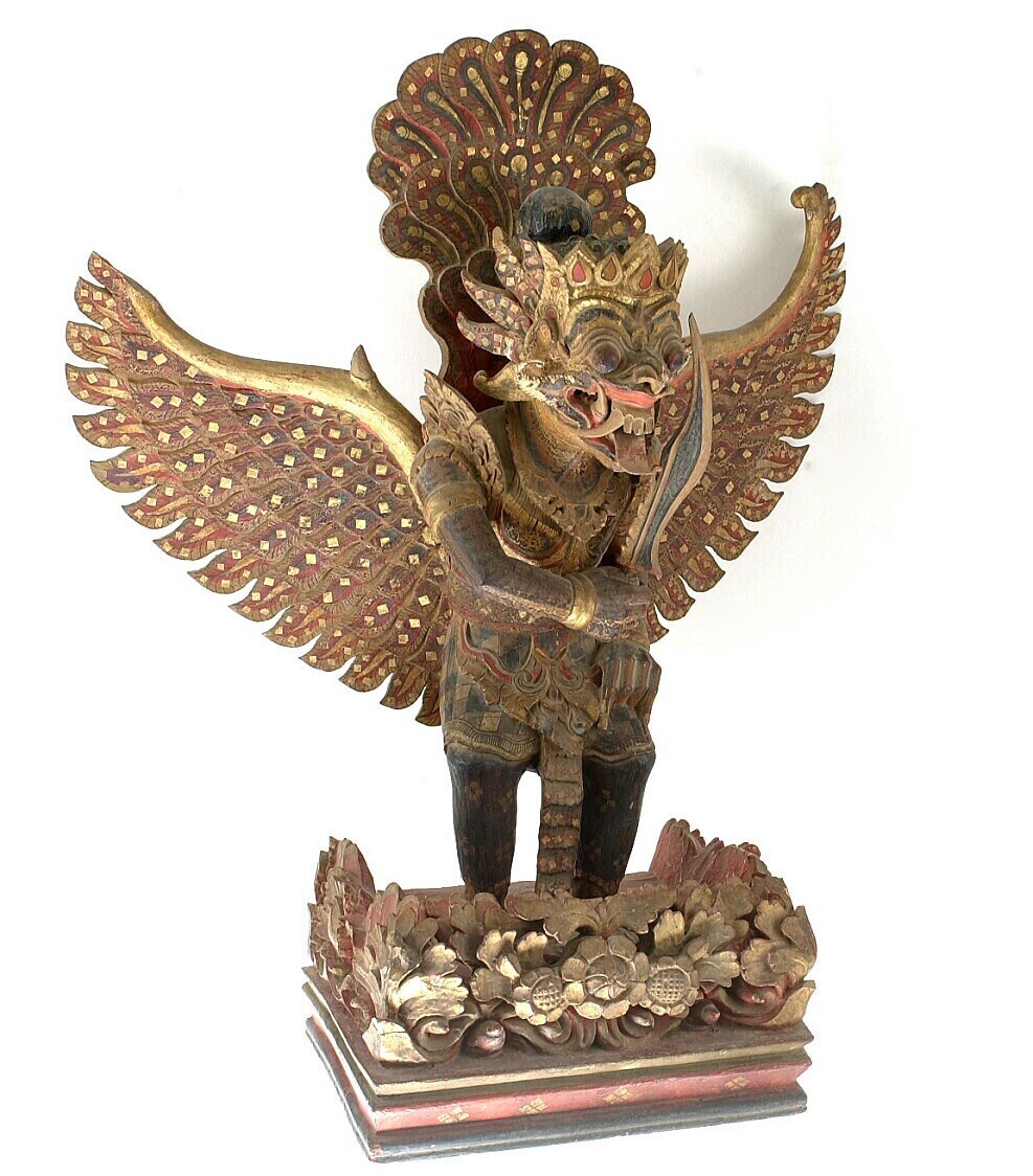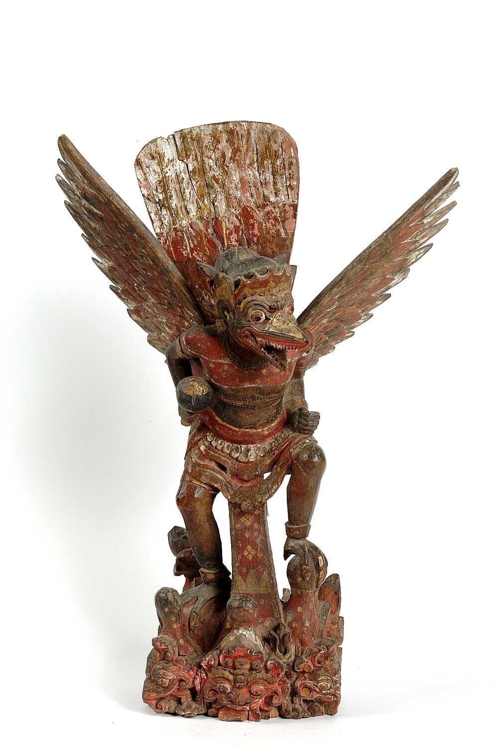 Houten beeld voorstellende Garuda met knots