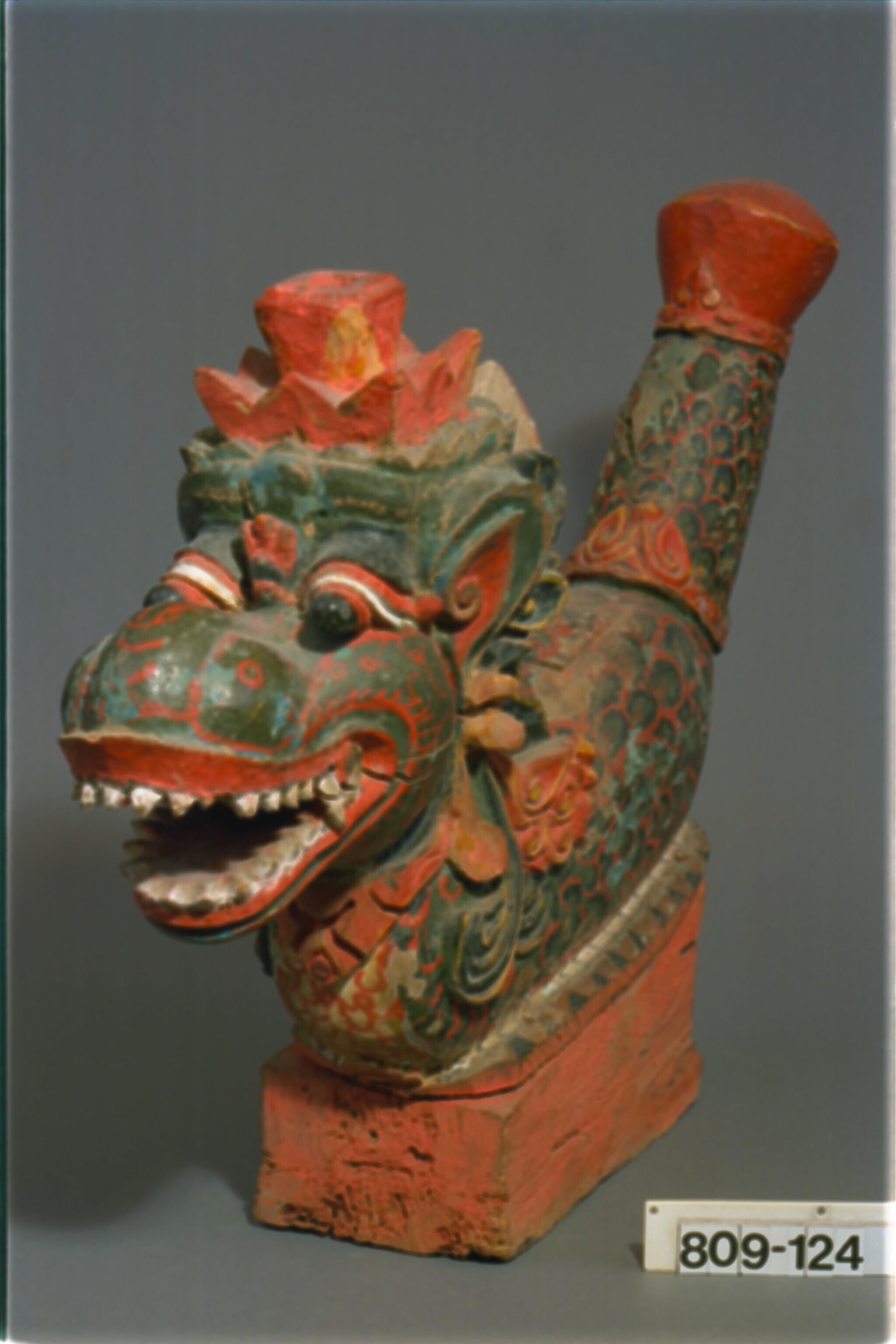 Houten beeld in de vorm van de mythische slang Basuki