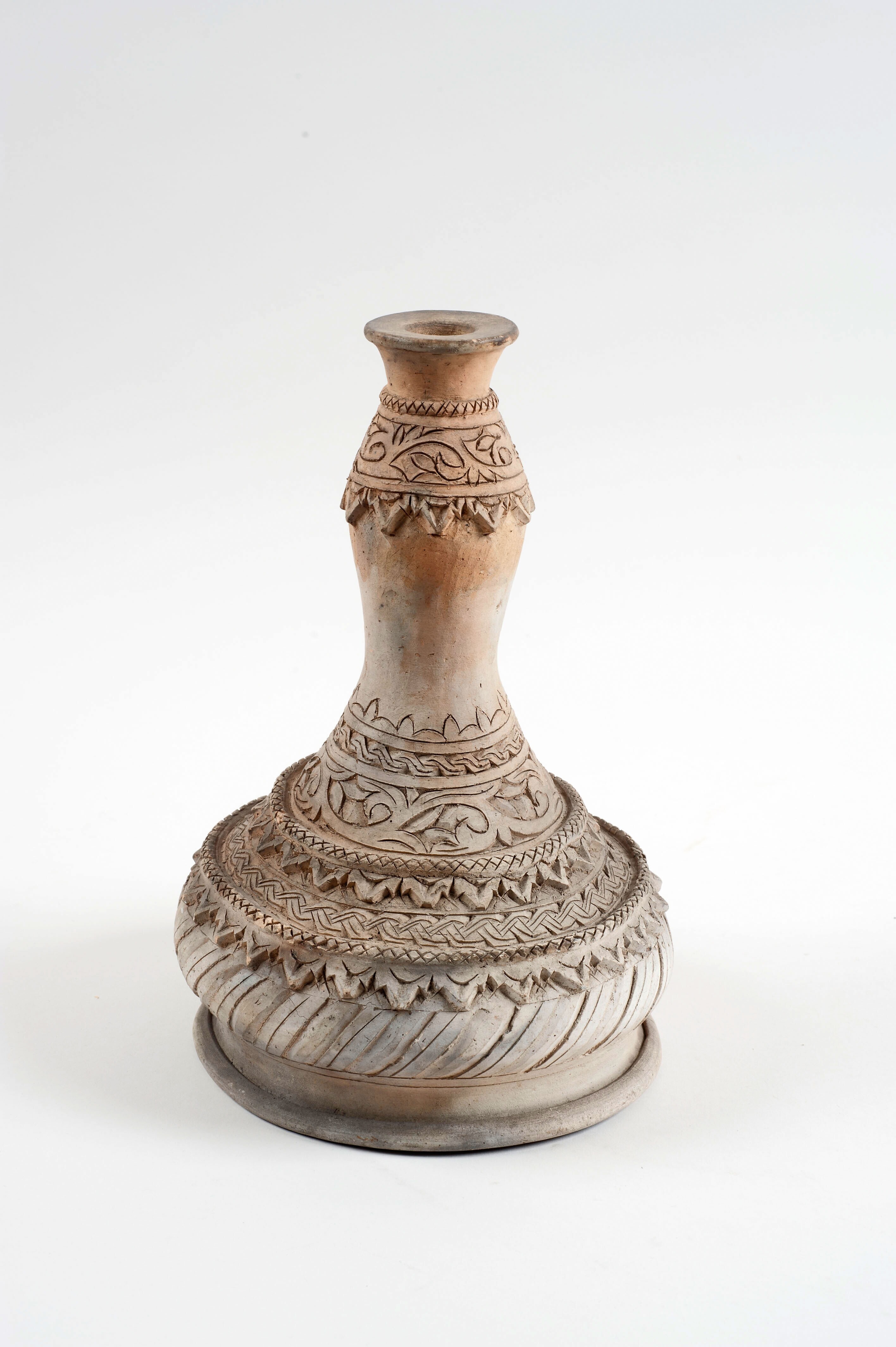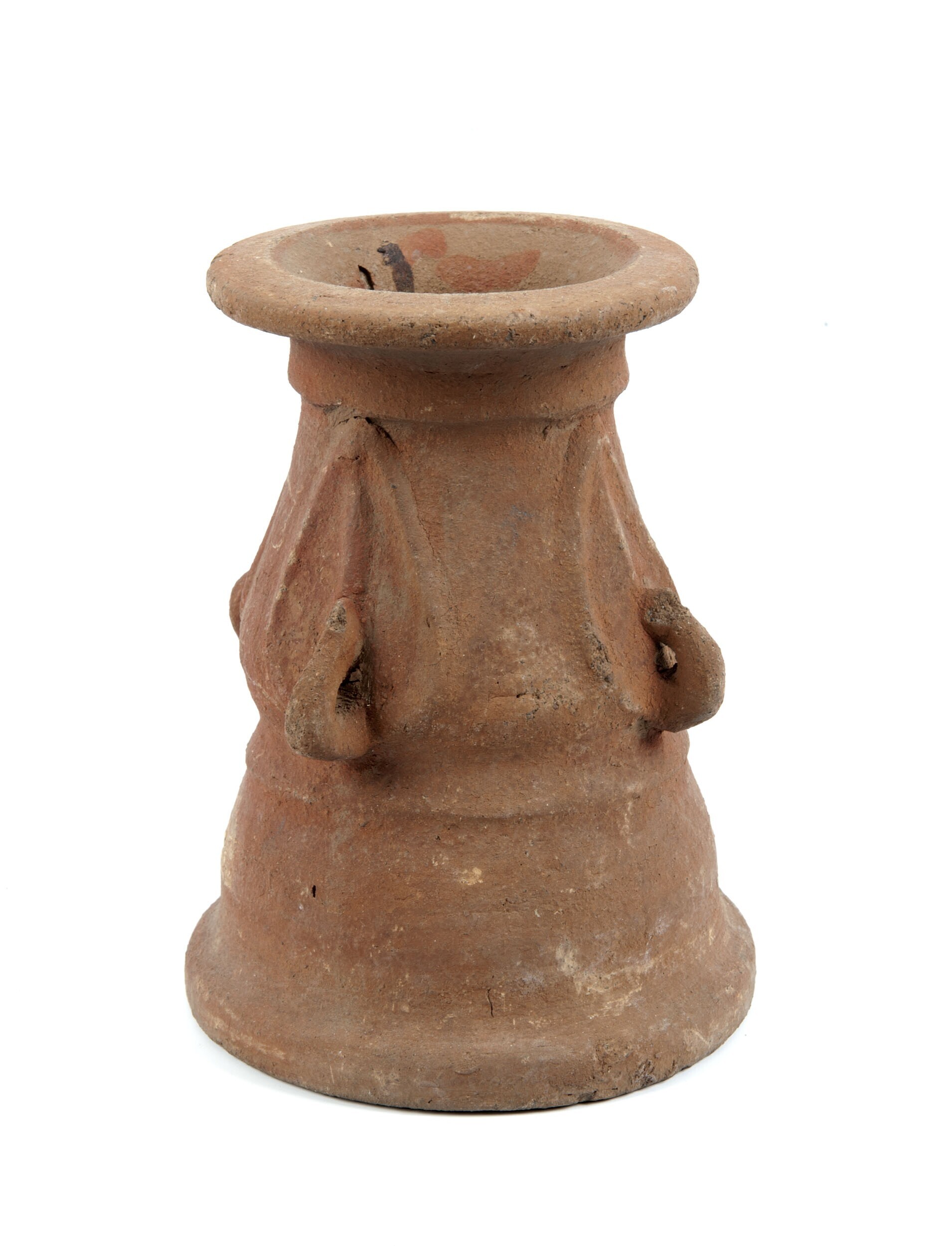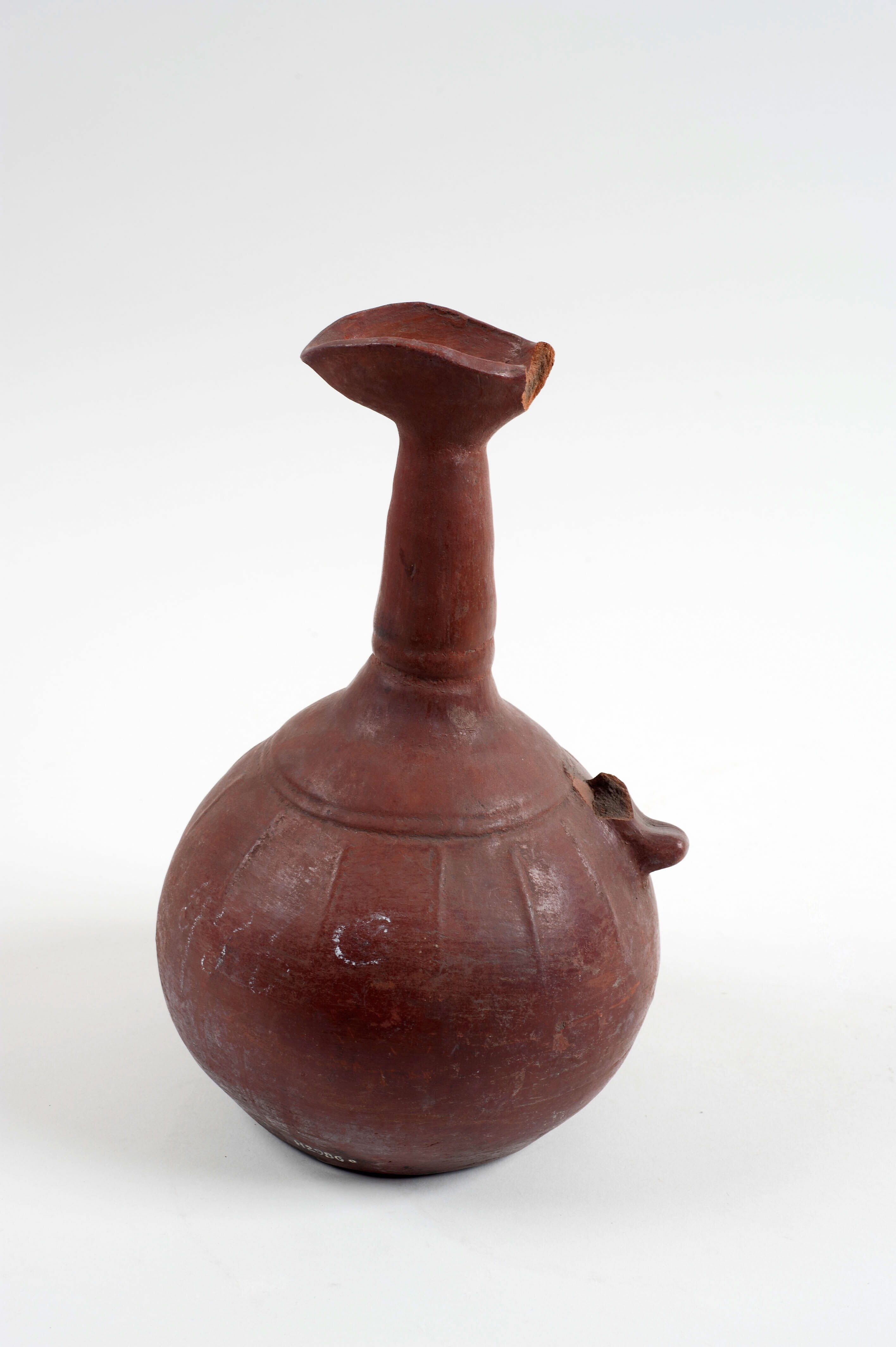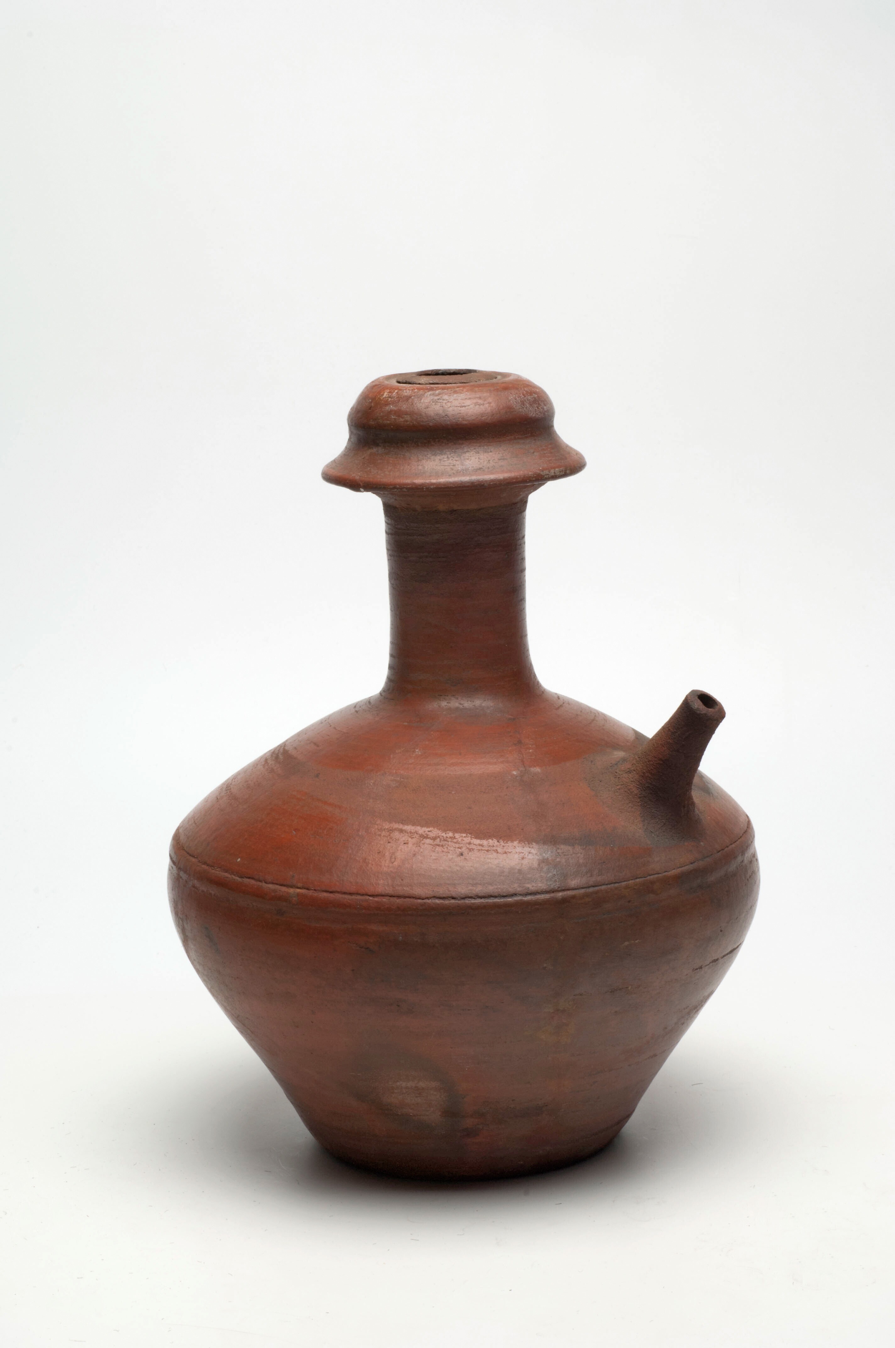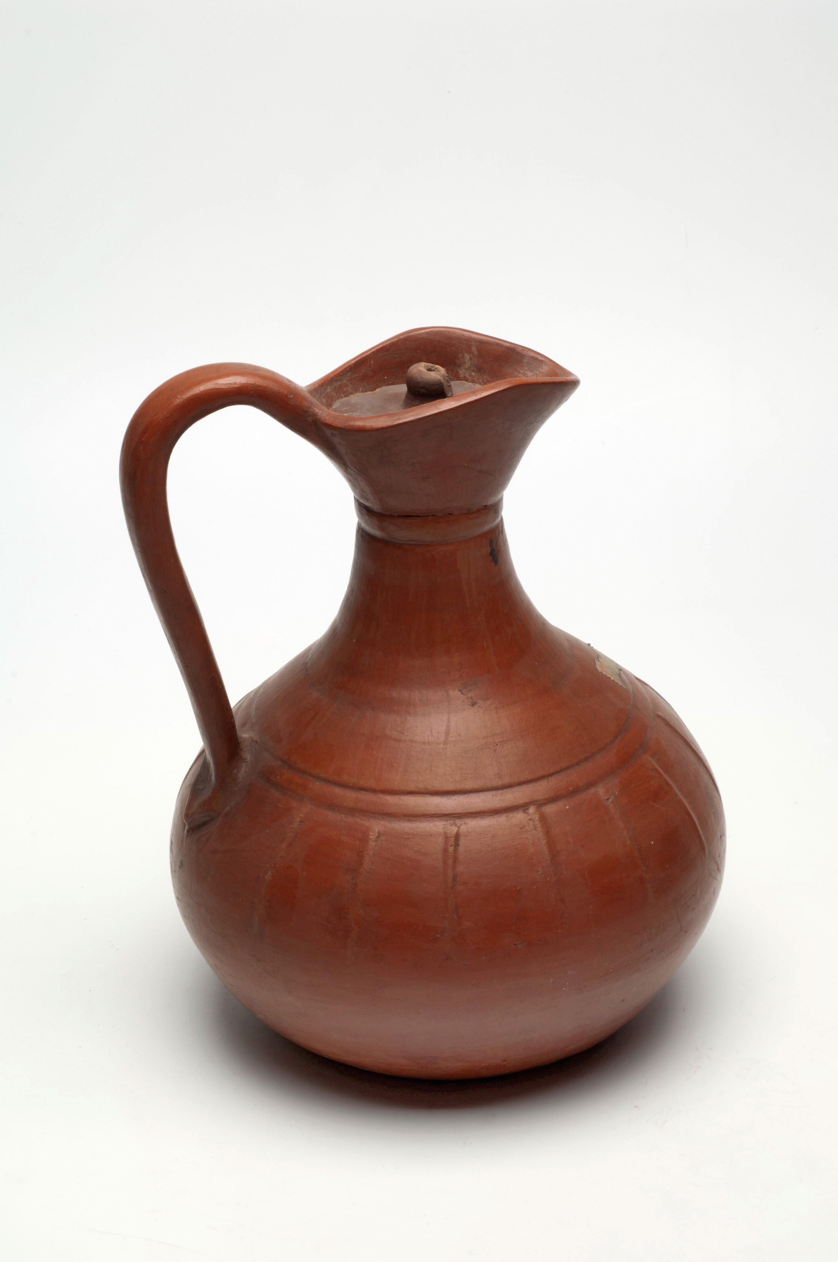 Aardewerken schenkkan in de vorm van een hoge melkkan