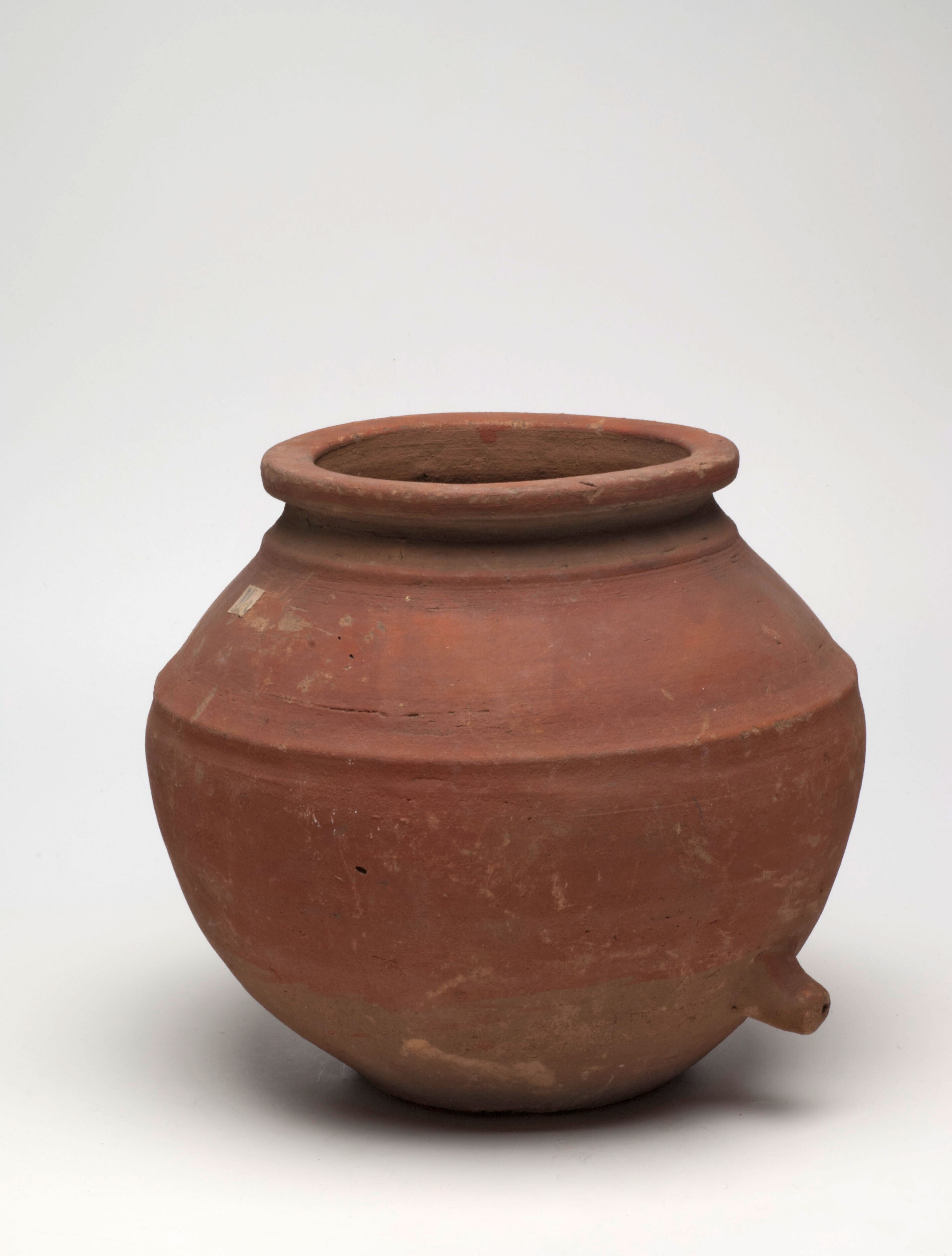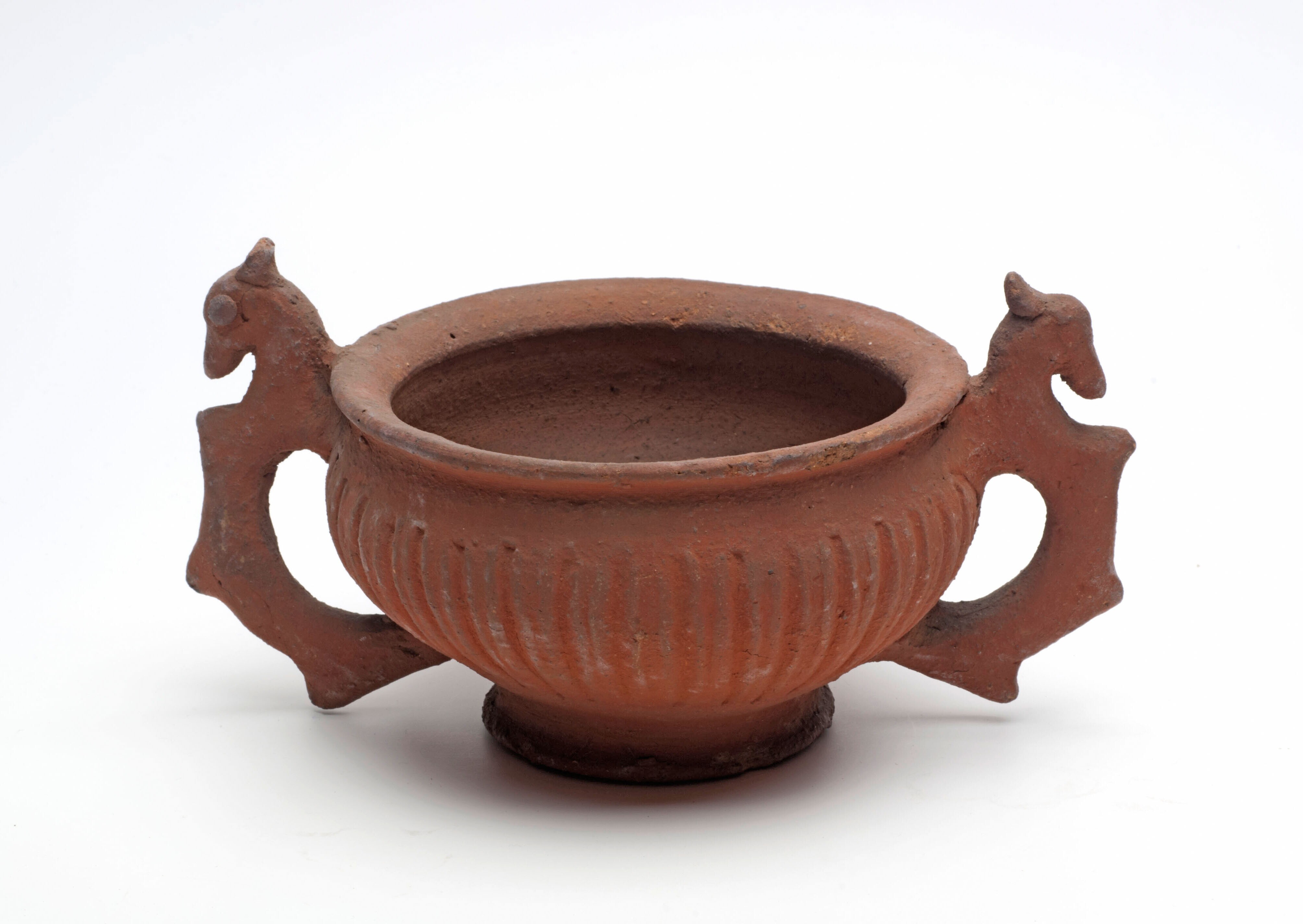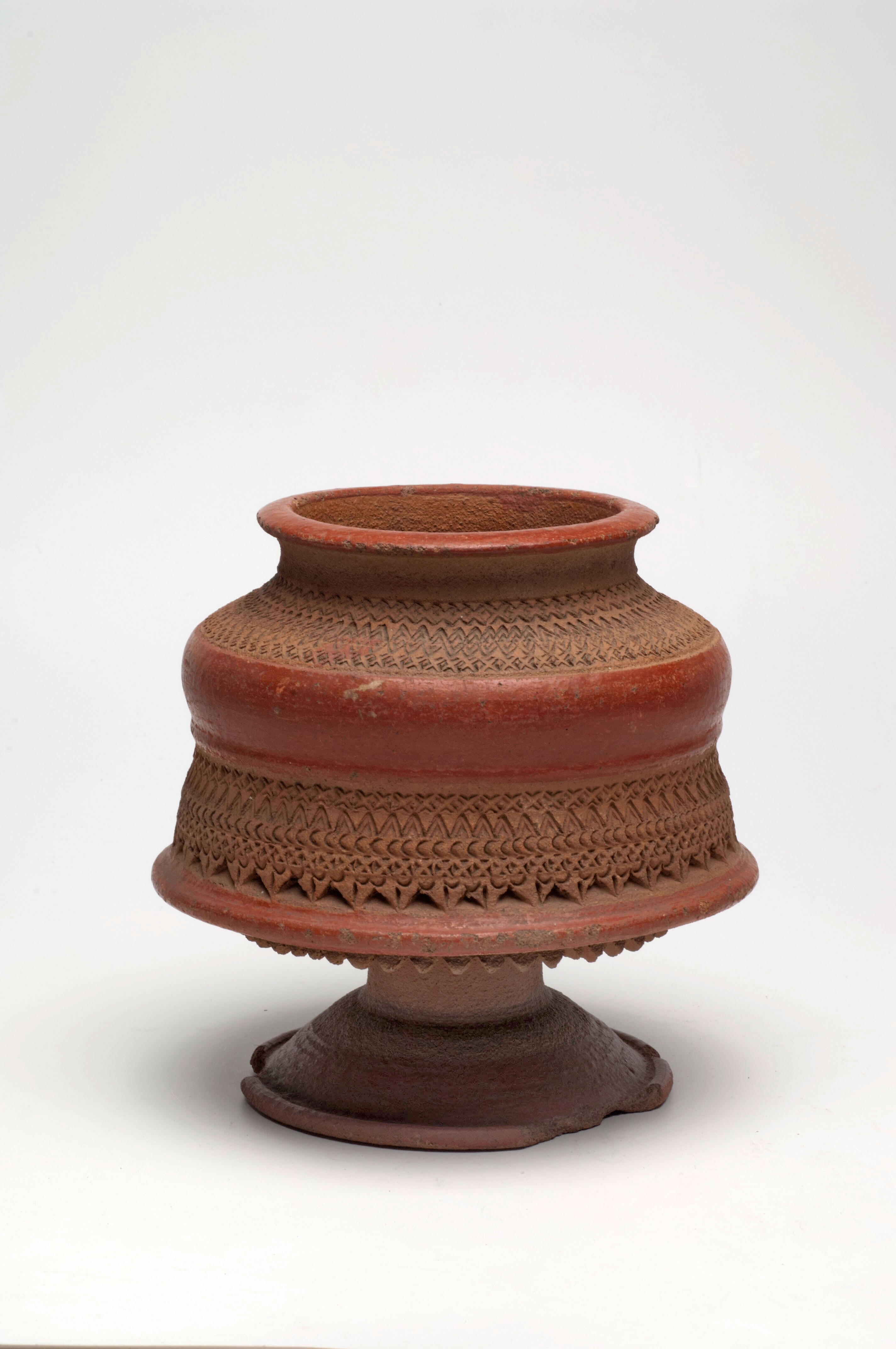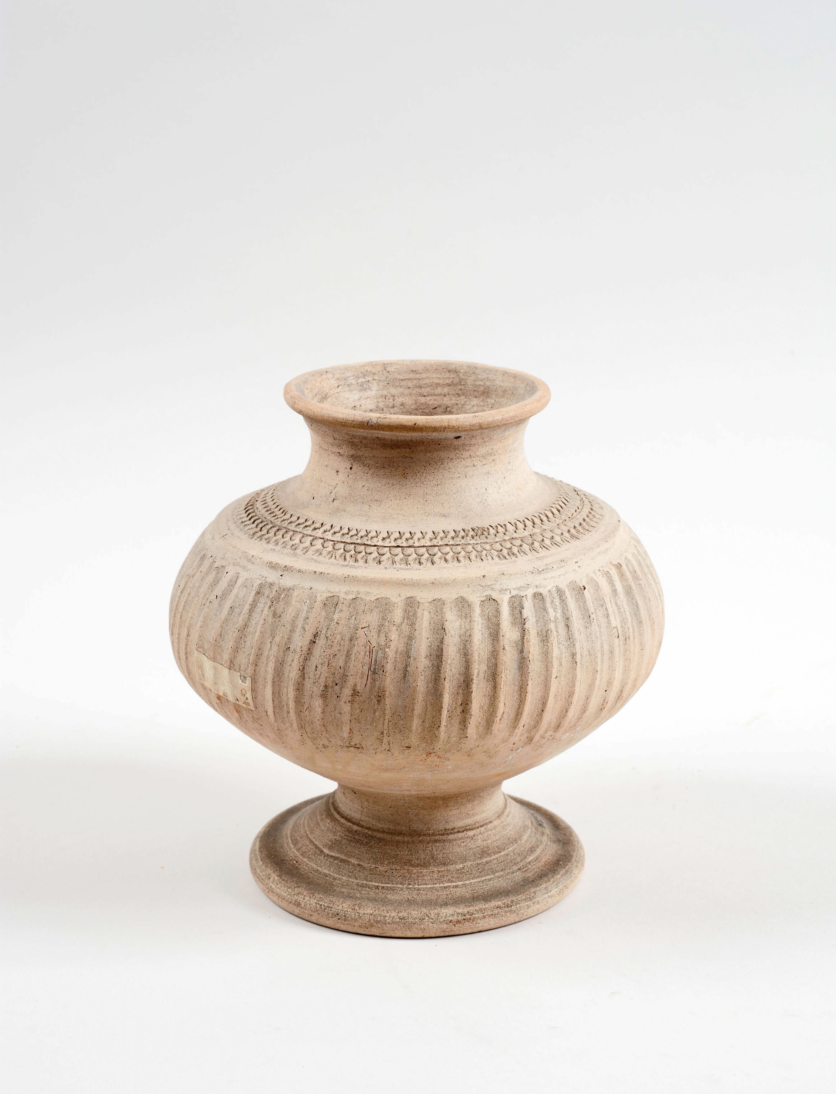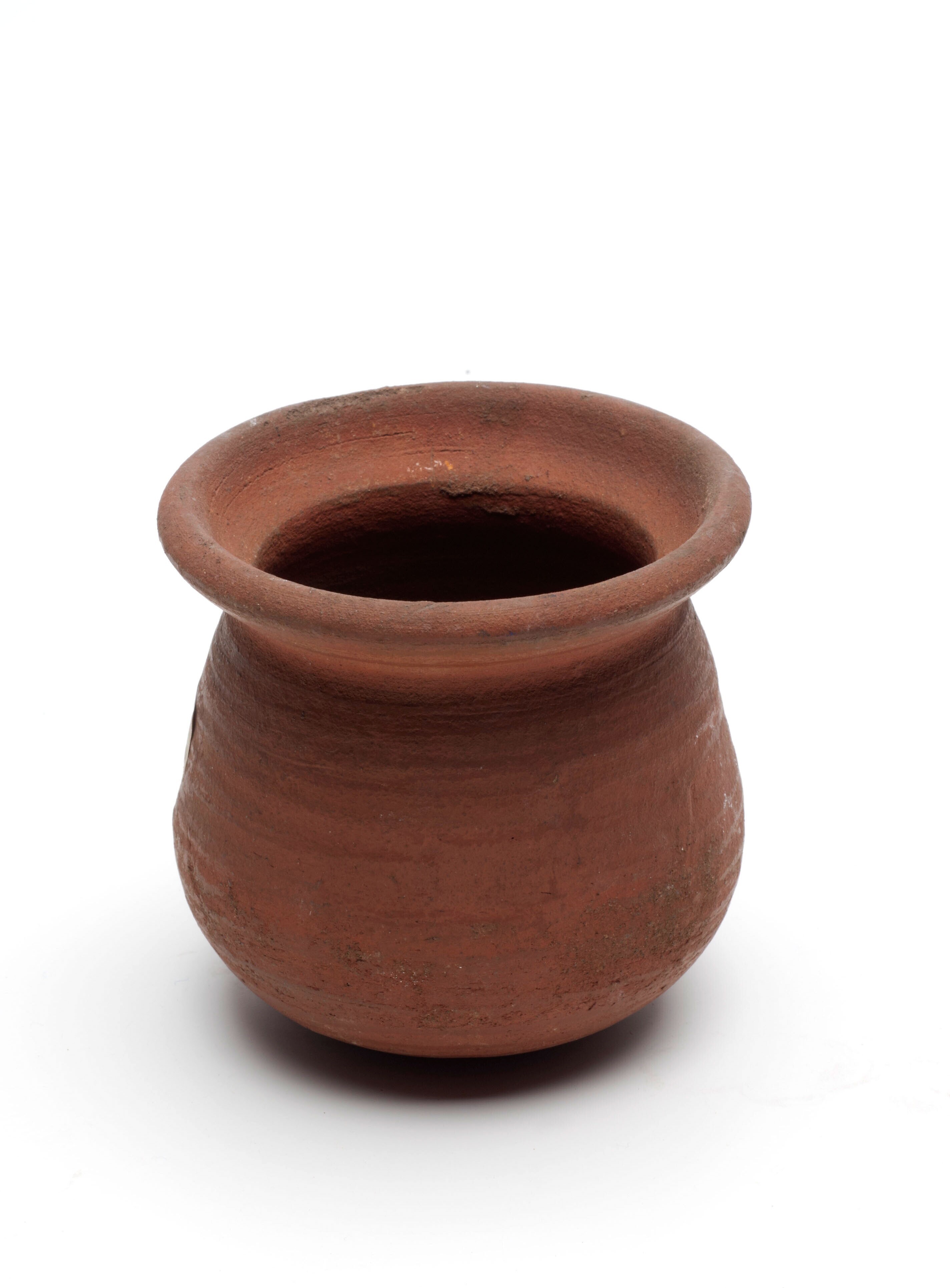 Aardewerken schenkkan in de vorm van een hoge melkkan