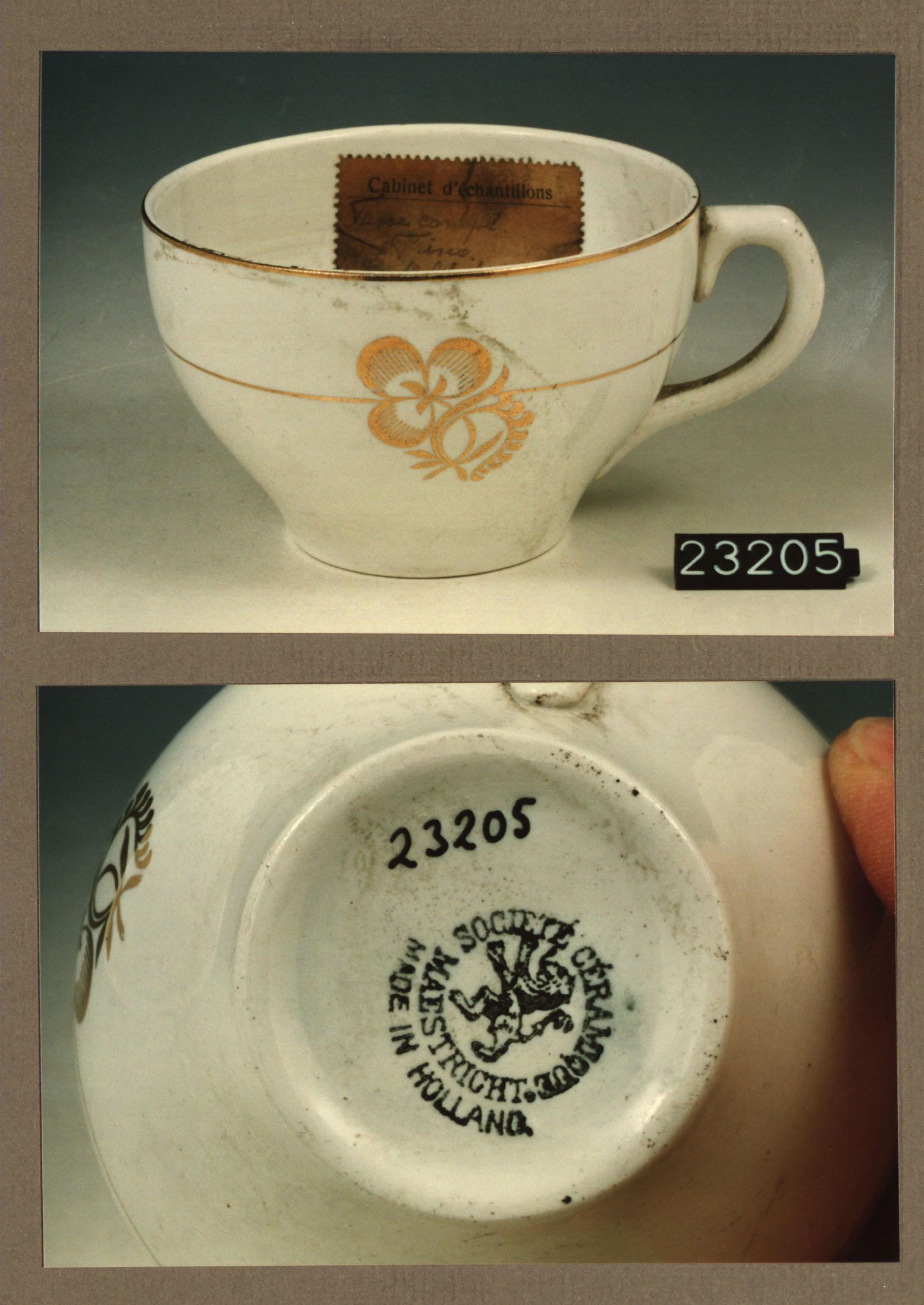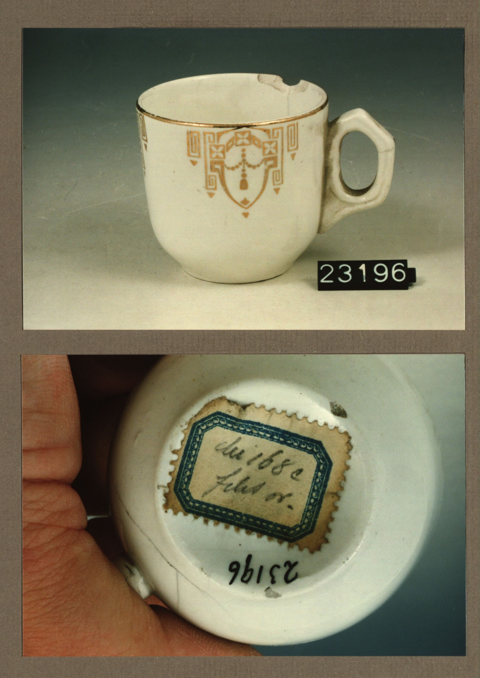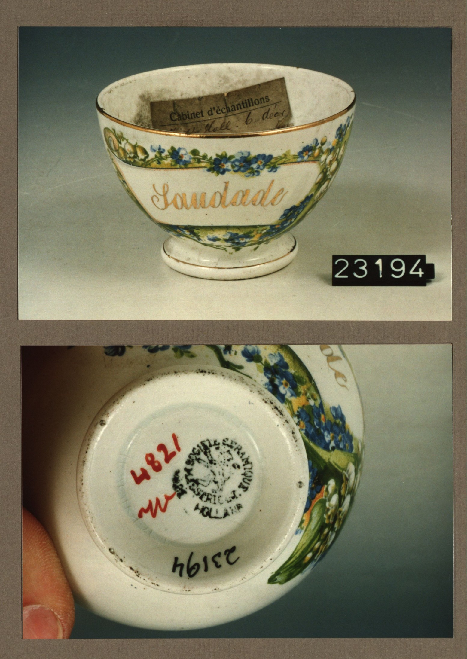 Kop met opschrift, model Sevres met decor 16 Annos