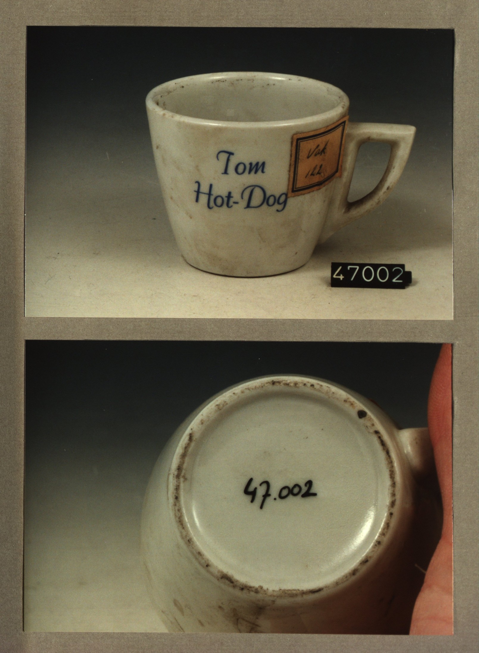 Kop met opschrift, model P2 met decor Tom Hot Dog