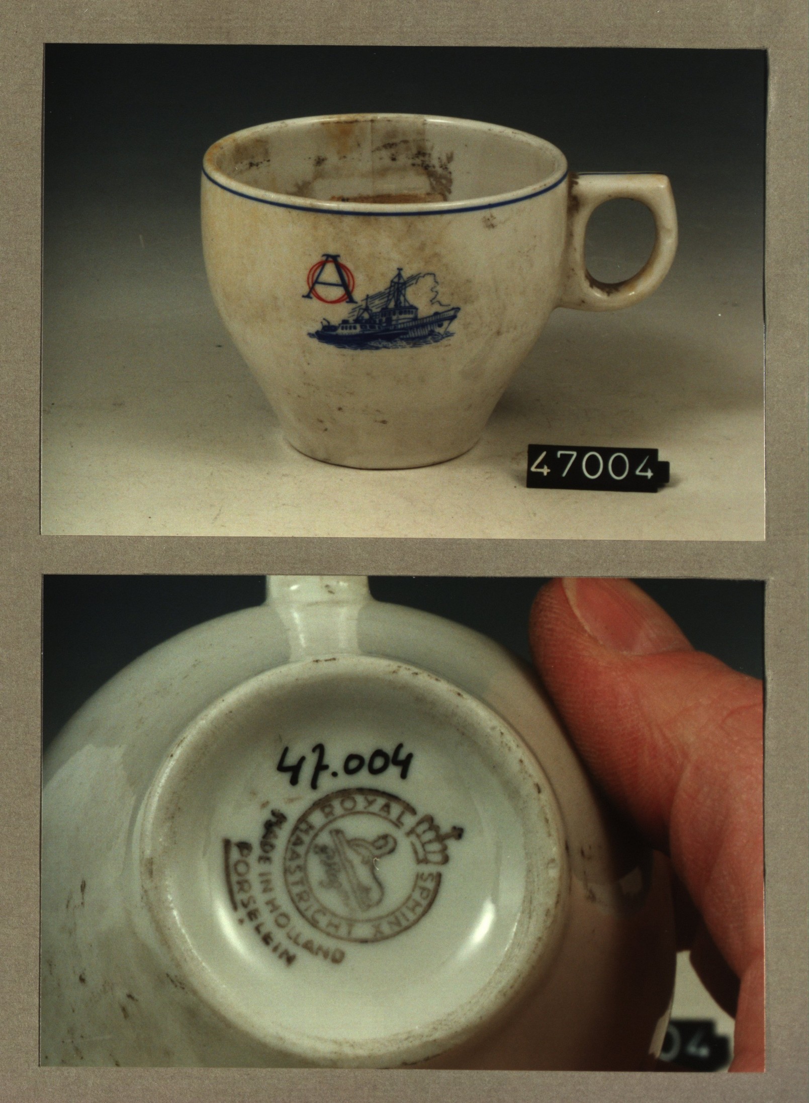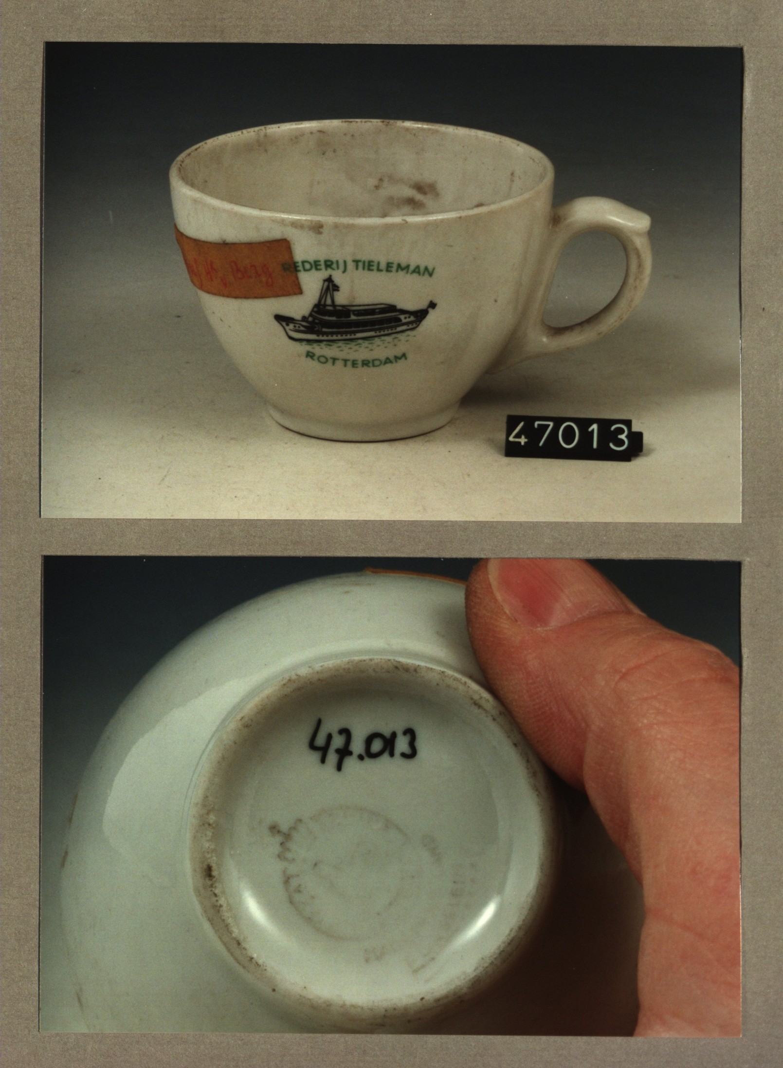 Kop met opschrift, model SMN met decor Rederij Tiele...