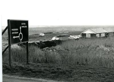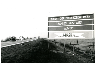 Verkeersbord in Zuidelijk Flevoland, 10 januari 1972