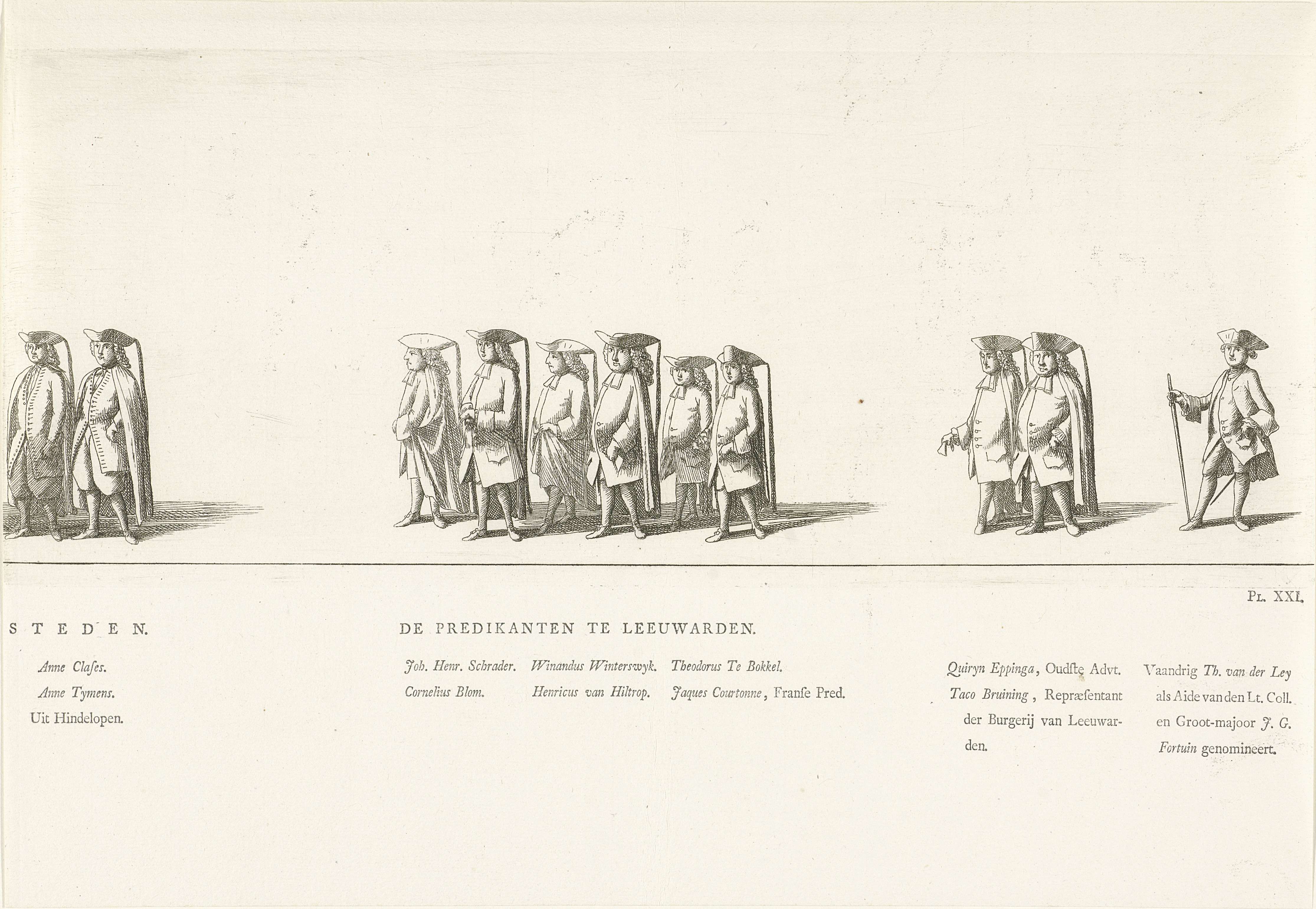 Predikanten van Leeuwarden in de begrafenisstoet van...