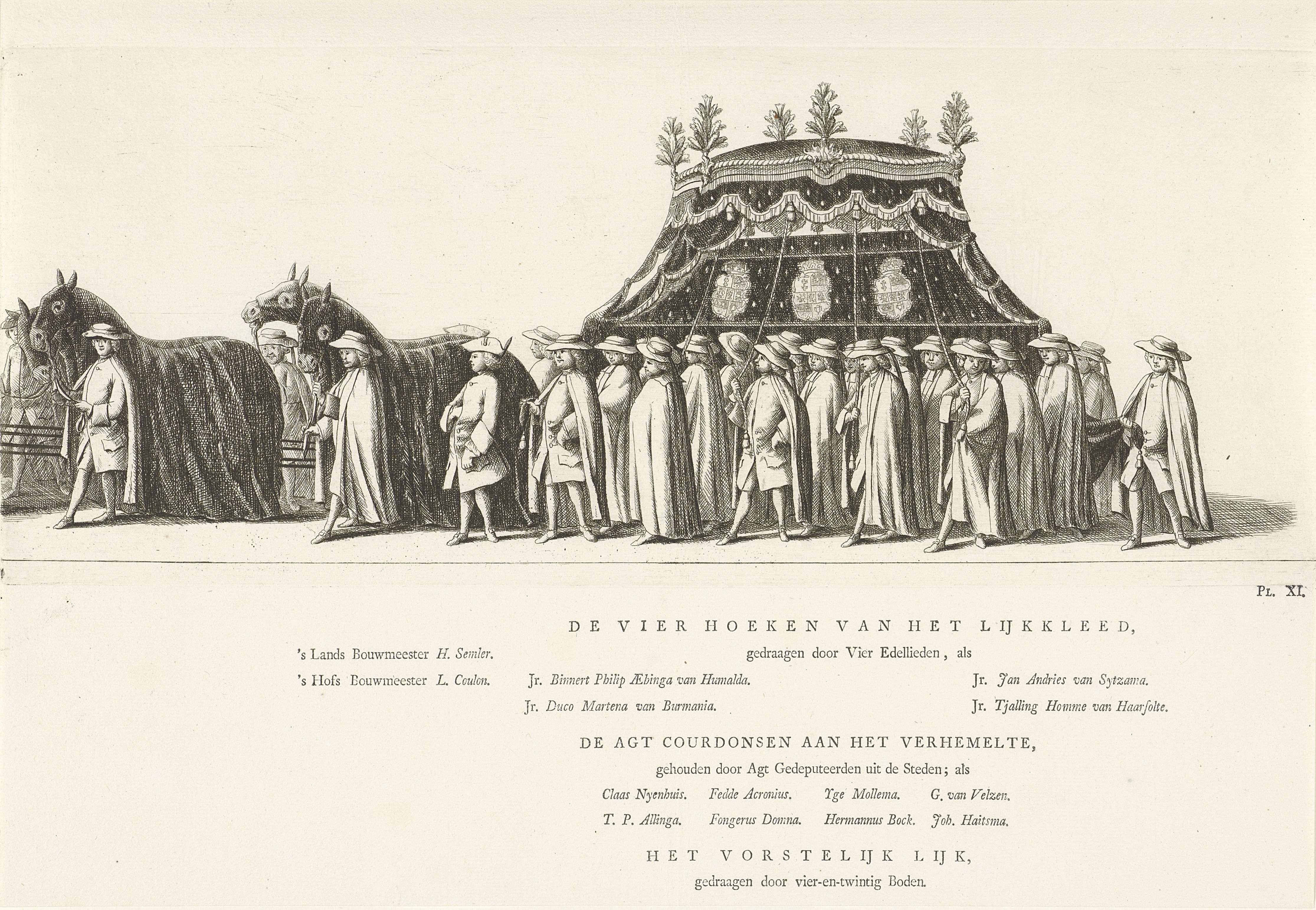 Leden van het Hof van Friesland in de begrafenisstoe...