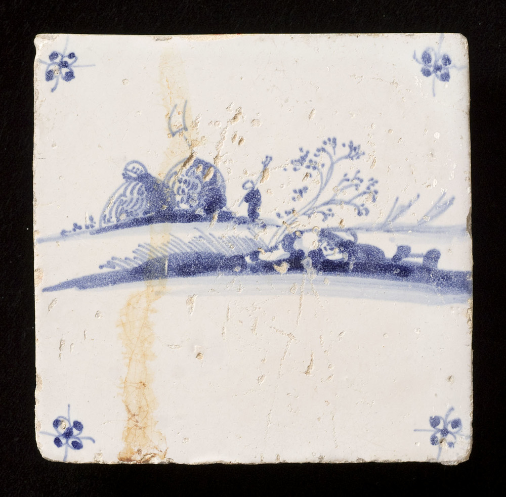 tegel van aardewerk met tinglazuur, voorstellende: h...