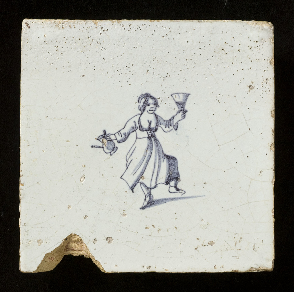 Tegel in tinglazuur, voorstellende deerne uit taveer...