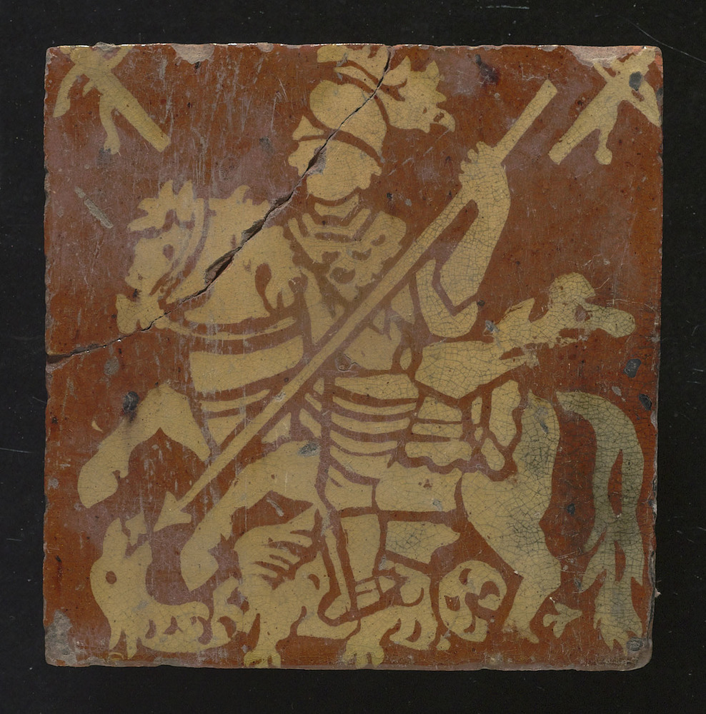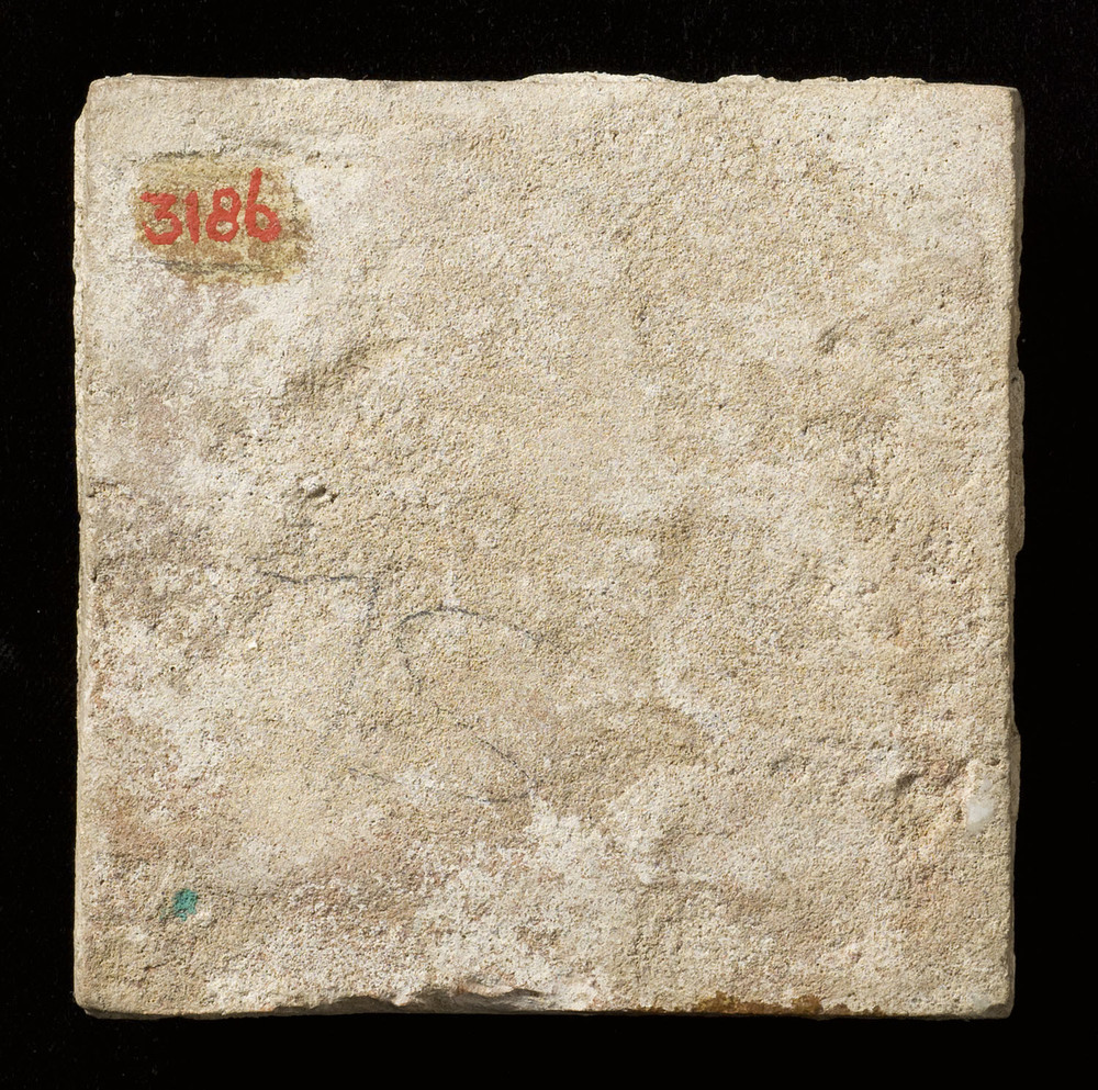 Vloertegel van keramiek, slibtechniek-inleg, voorste...