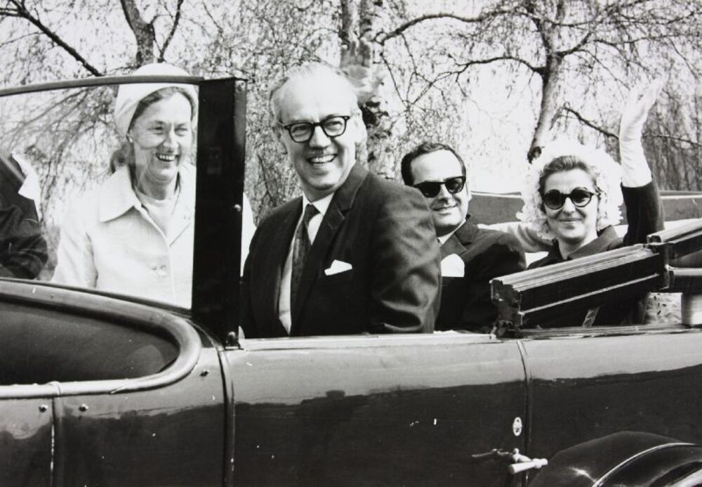 Zwart-wit foto van het afscheid of jubileum? van pas...