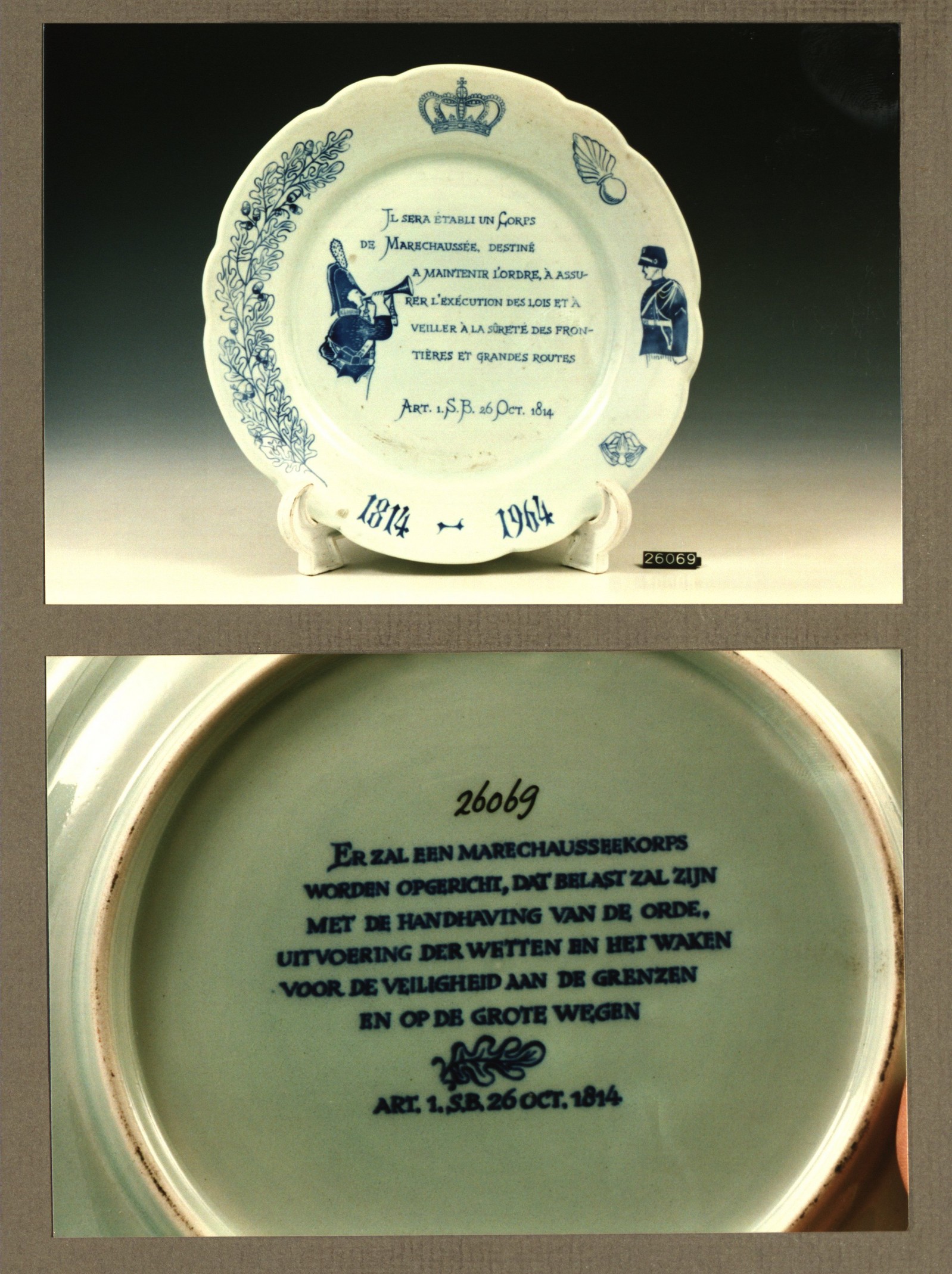 Wandbord, model Nelson met decor Marechaussee 1814-1964