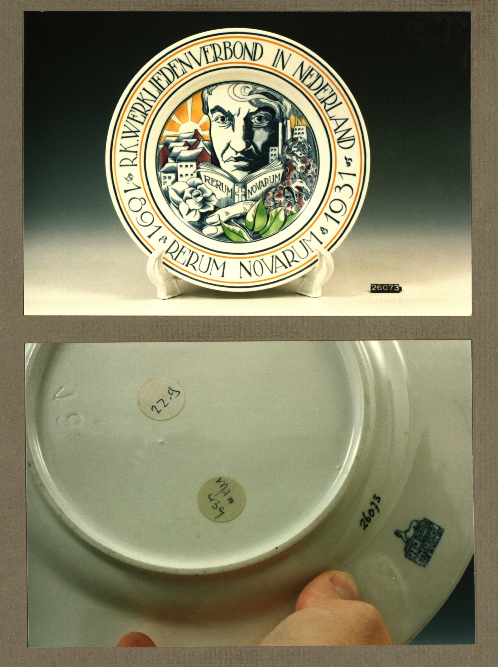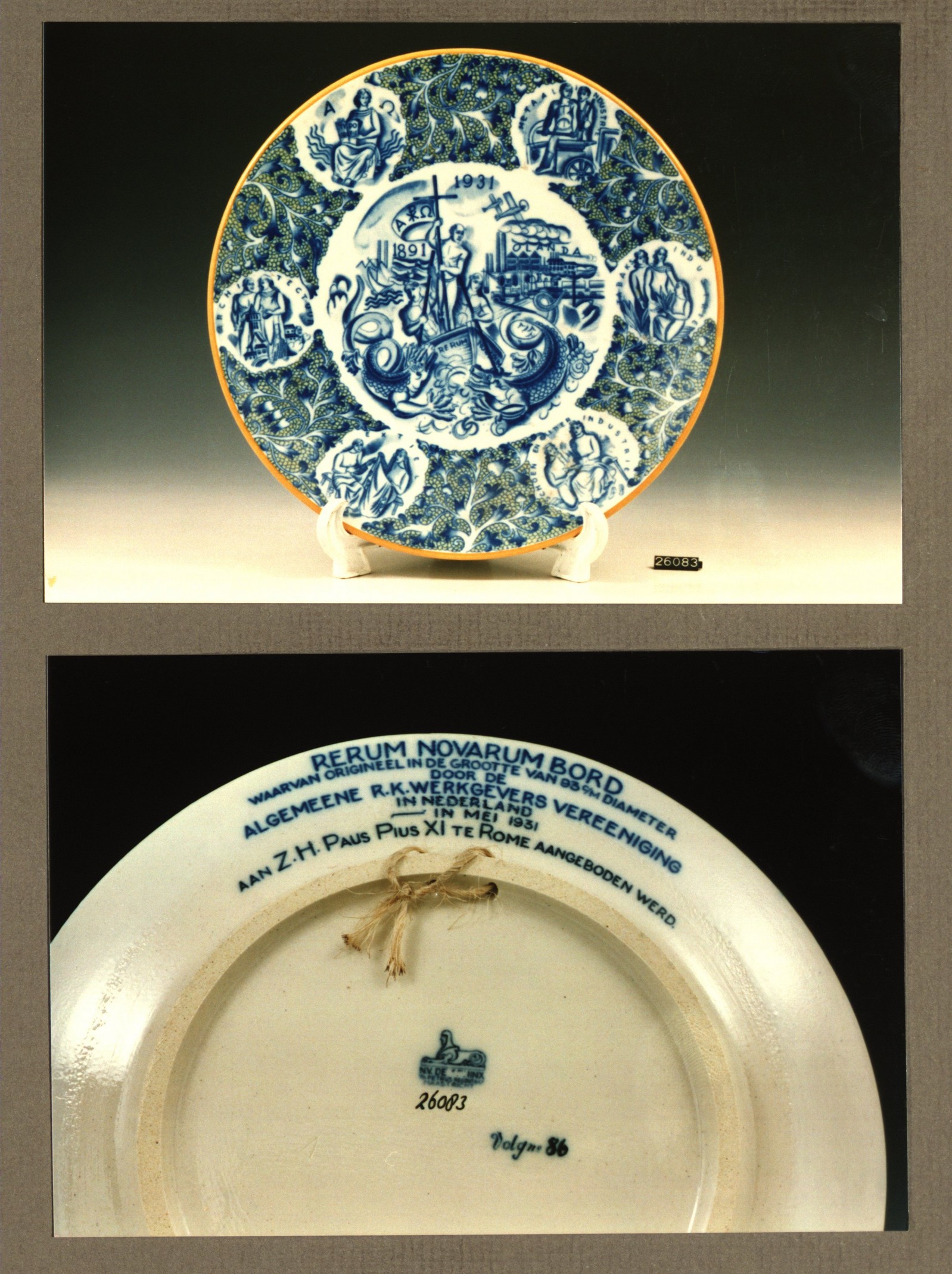 Wandbord met decor Rerum Novrum bord aan Z.H.Paus Pi...