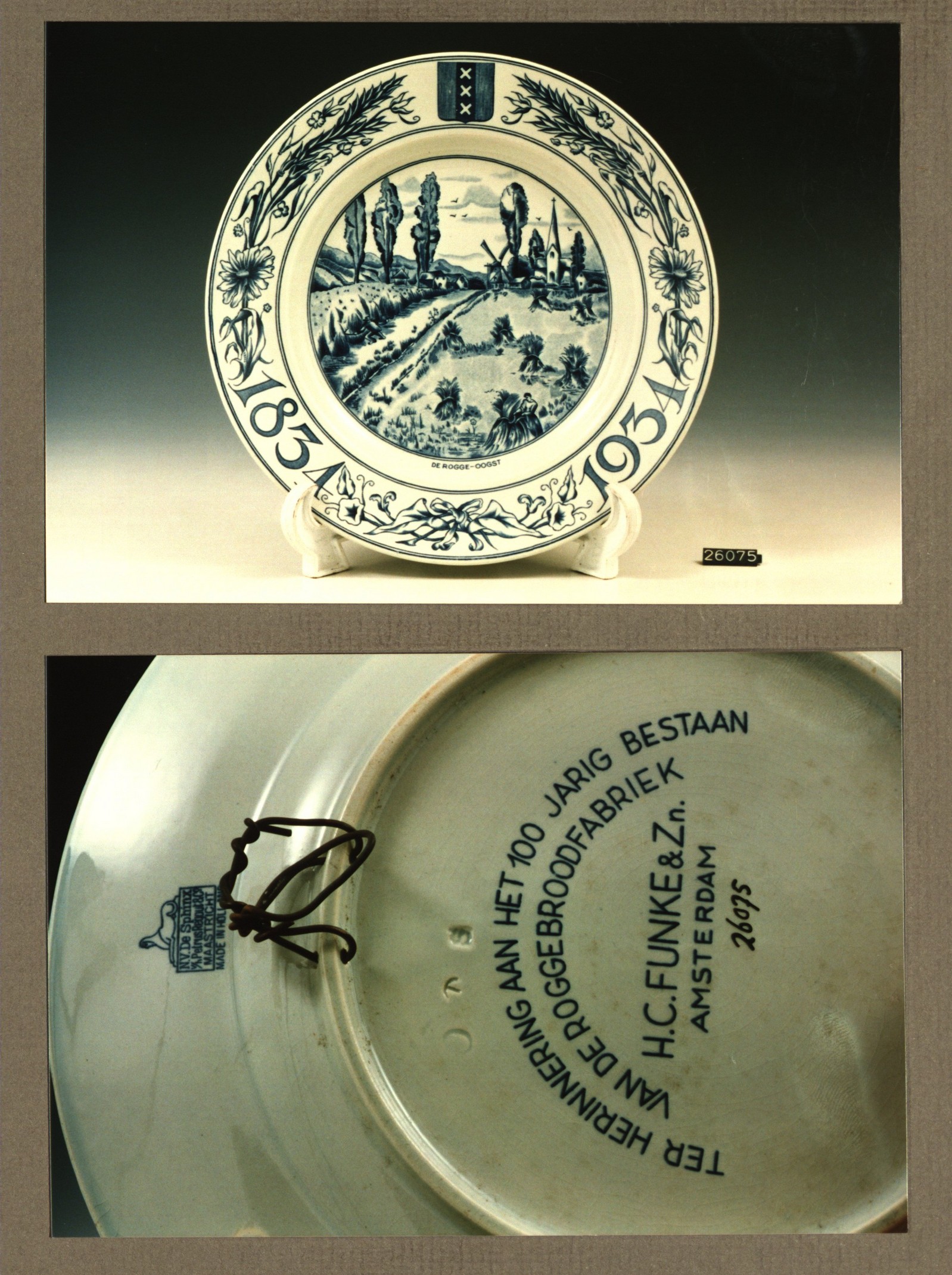 Wandbord met decor Roggebroodfabriek Funke en Zn Ams...