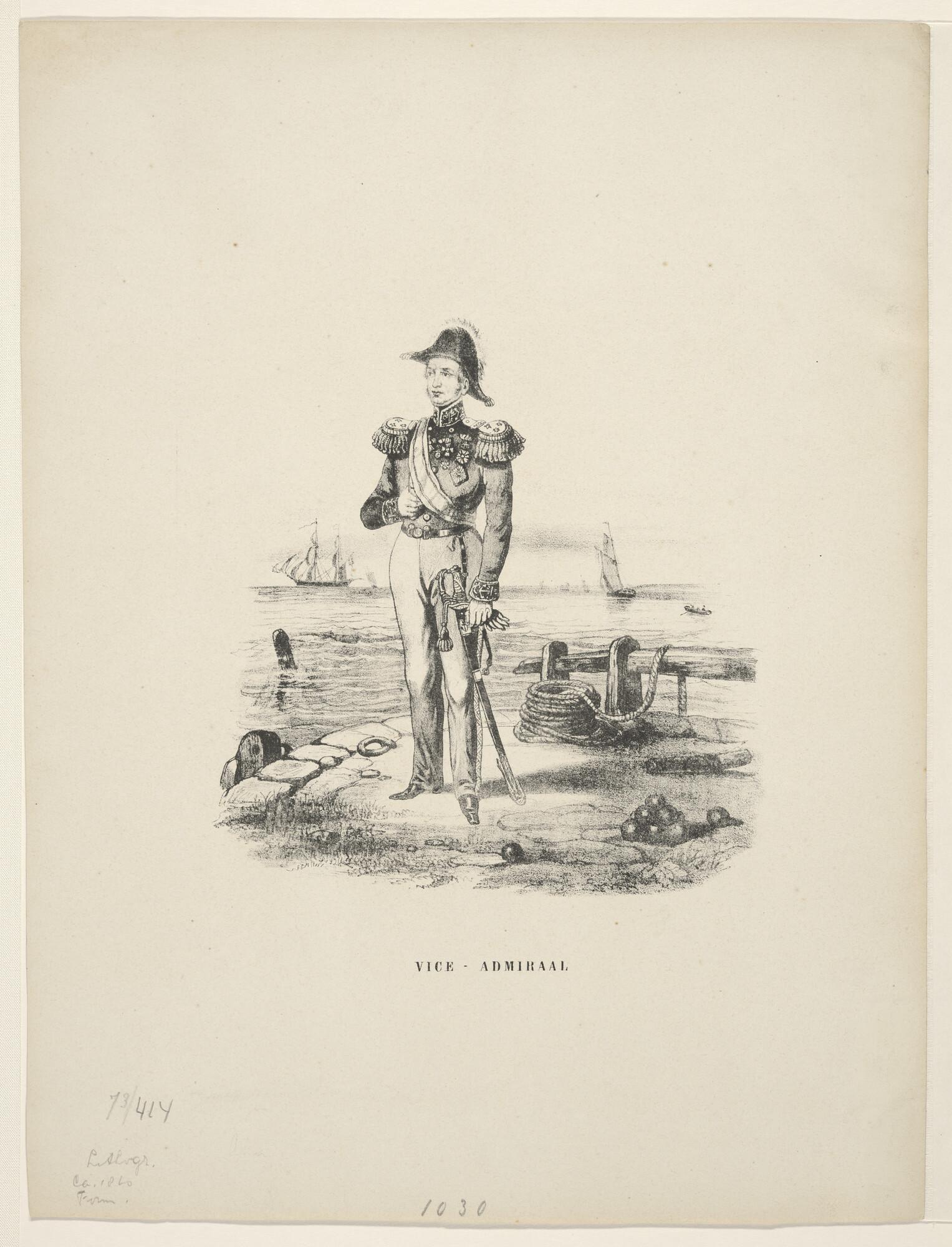 Vice-Admiraal, ten voeten uit, staande op een havenh...