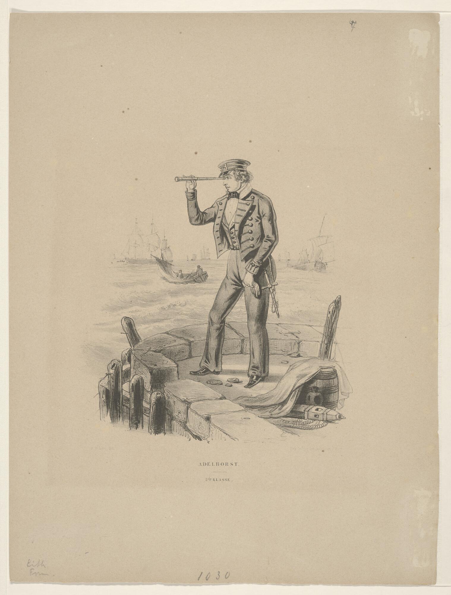 Adelborst Tweede Klasse, ten voeten uit, staande op ...