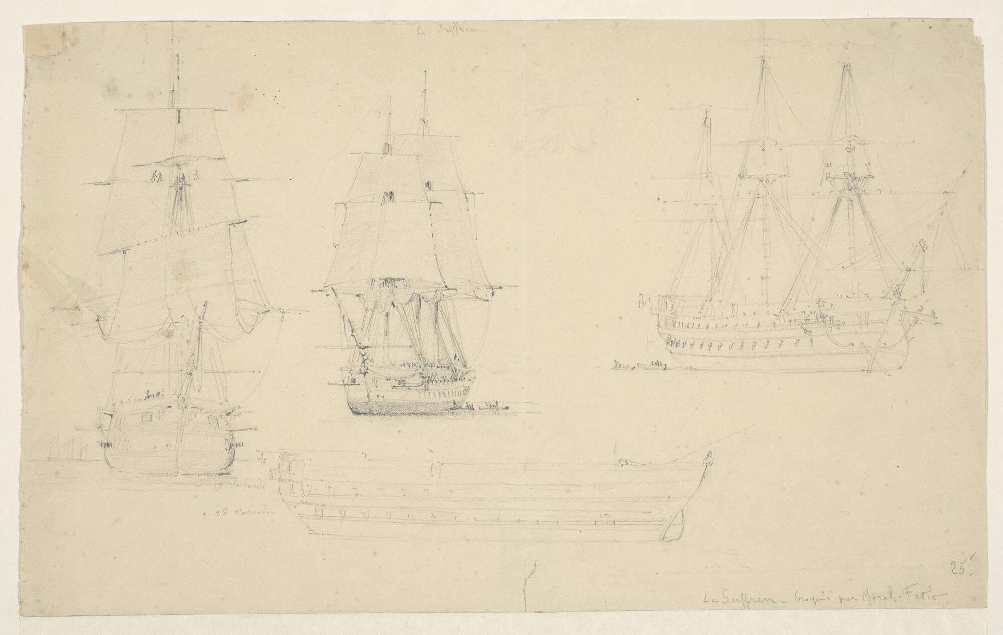 Vier studies van het Franse linieschip 'Le Suffren'