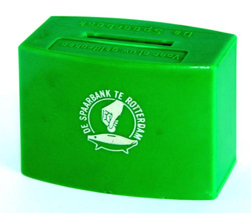 Spaarpot. ‘De Spaarbank te Rotterdam’ Groene langw...