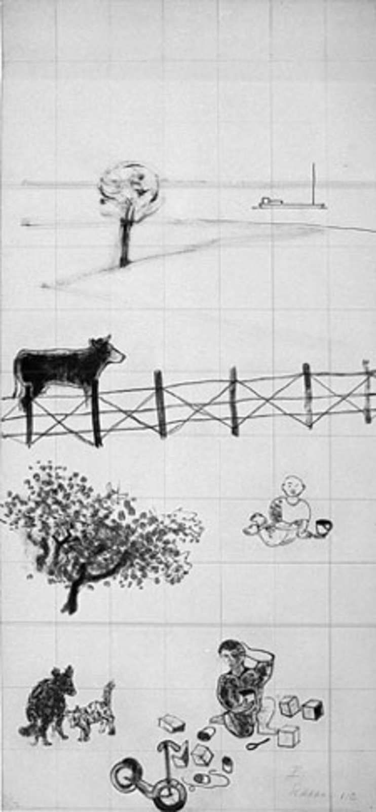 Compositie op grijs fond