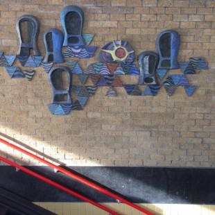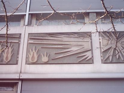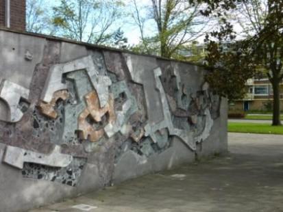 Geel-bruin monumentaal baksteenreliëf