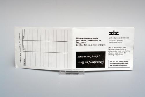Afsprakenkaart uit het Liduina Ziekenhuis Purmerend,...