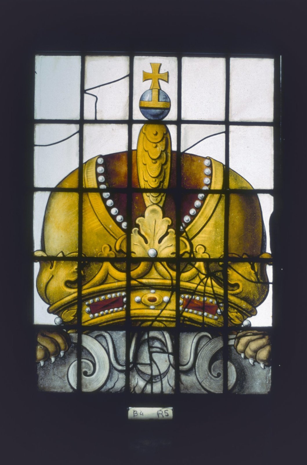 Interieur, gebrandschilderd glas nr. 5: "Wapen van A...
