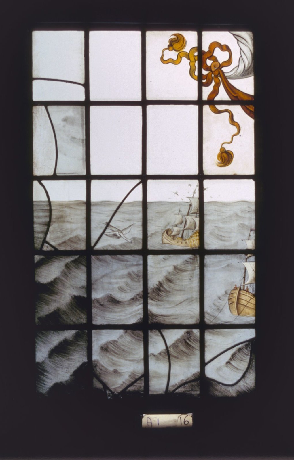 Interieur, gebrandschilderd glas, raam 16: "Uitwater...