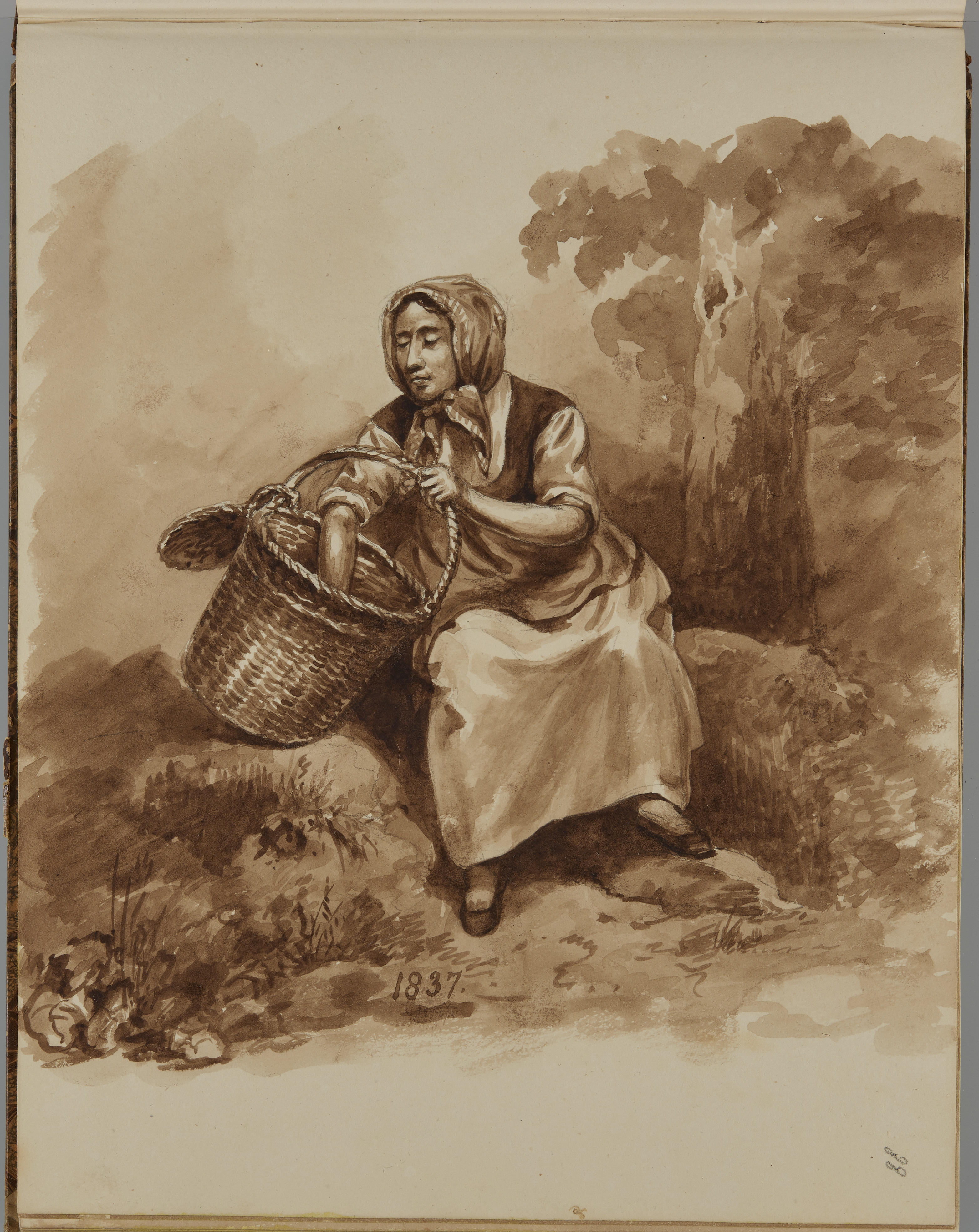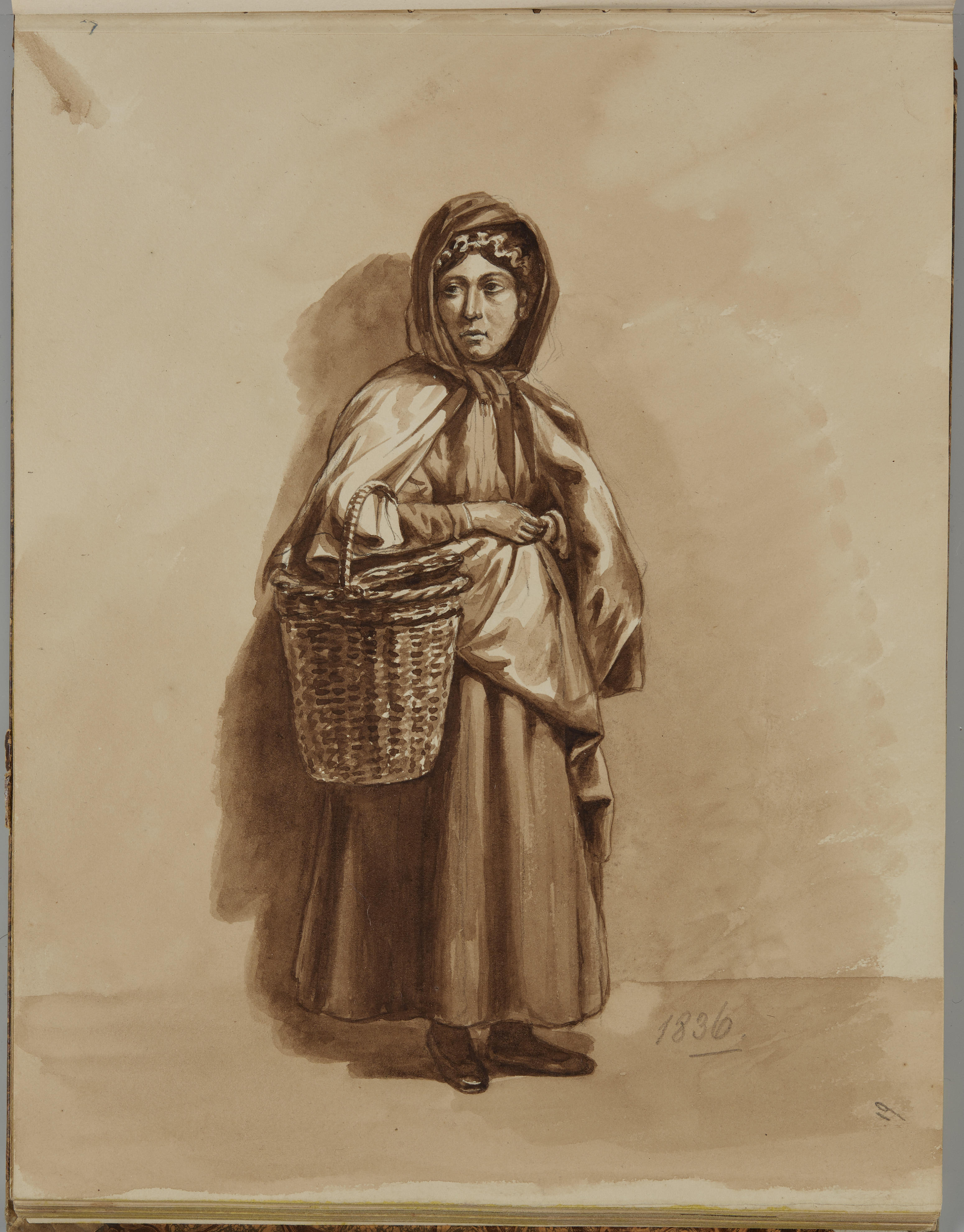 Tekening van een vrouw met een mand, 1837