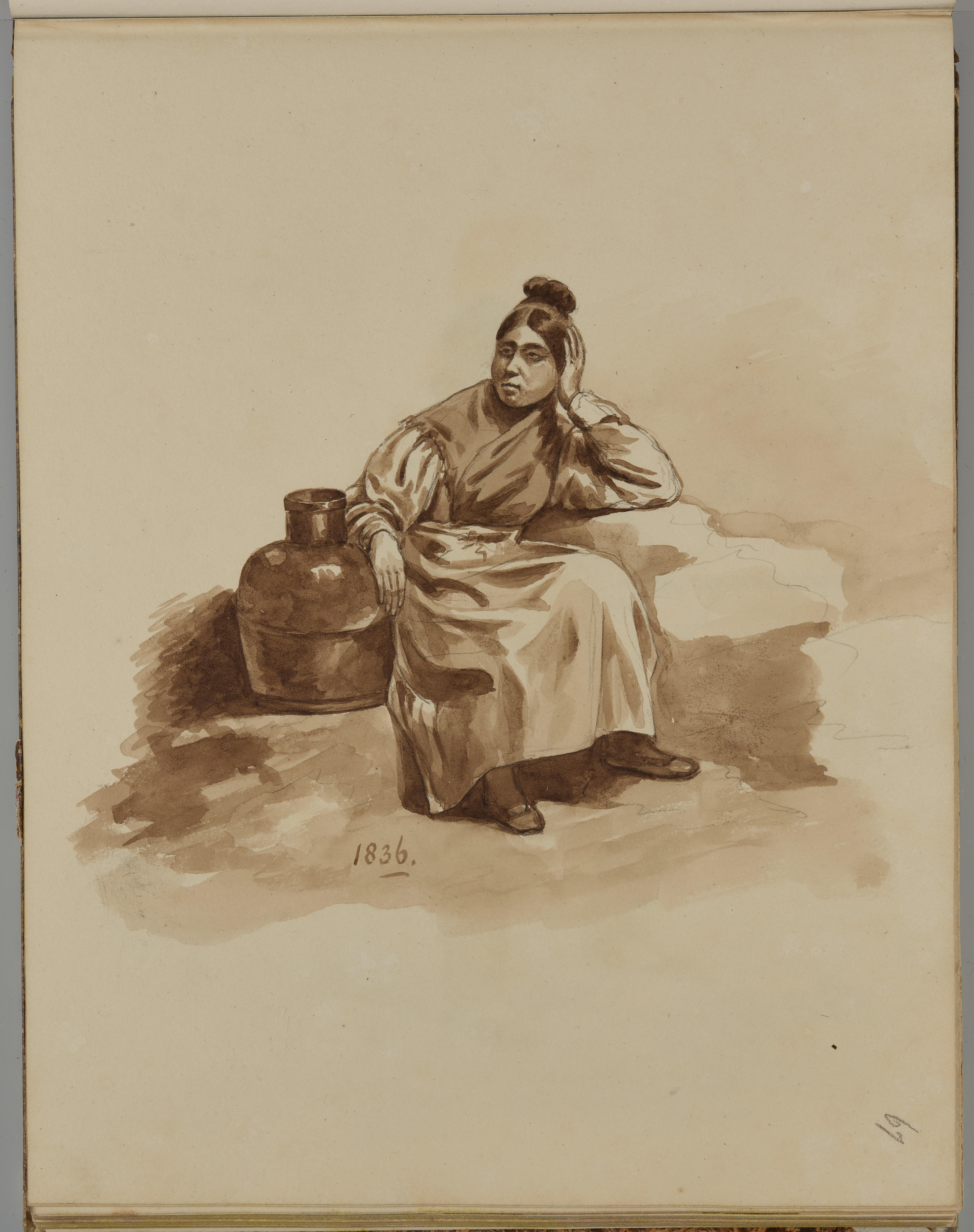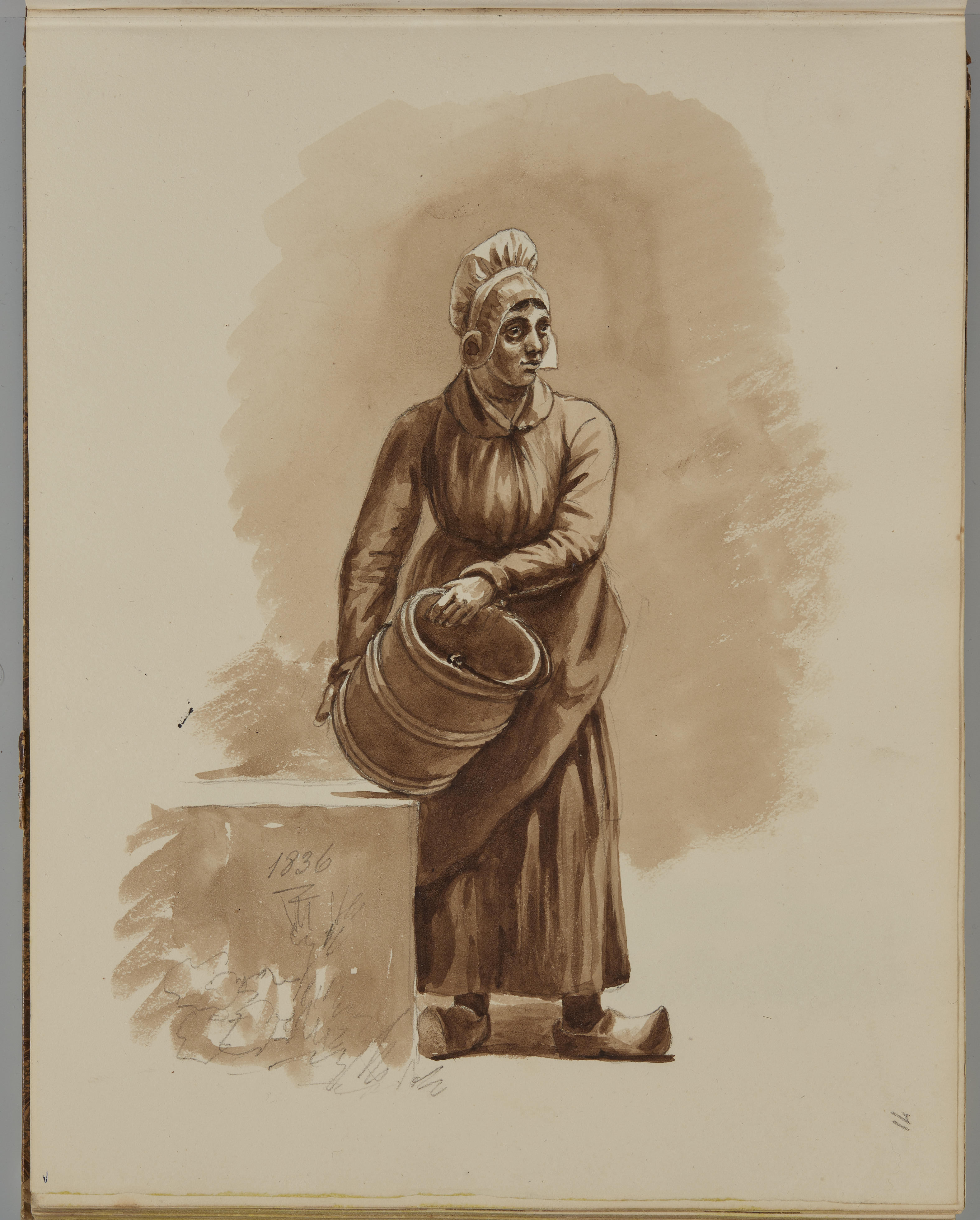 Tekening van een vrouw met een emmer, 1836