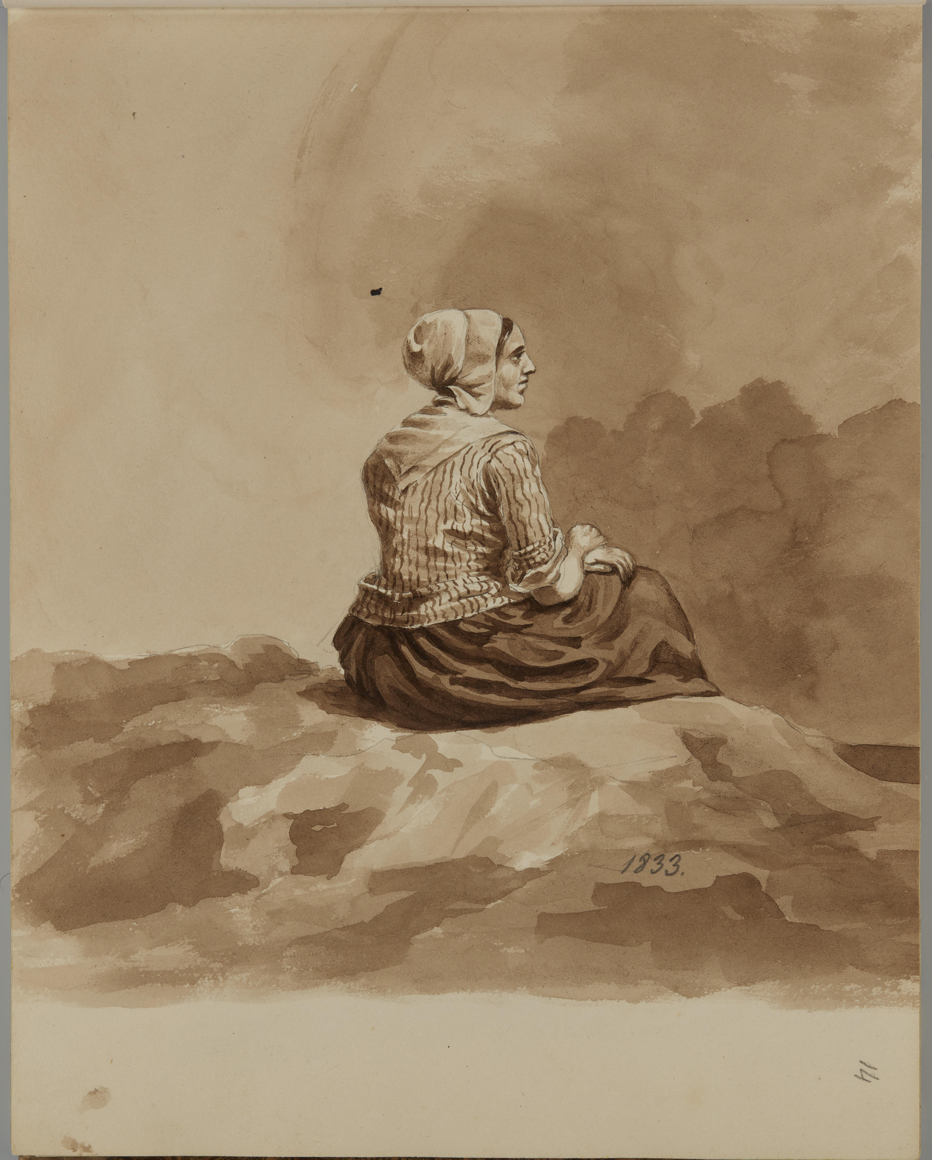 Tekening van een zittende vrouw, 1833