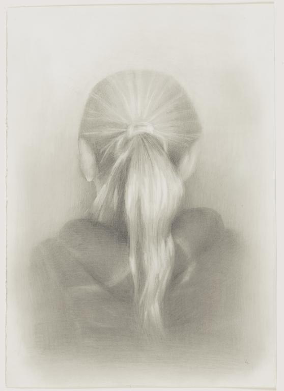 Achterhoofd van een vrouw met paardenstaart