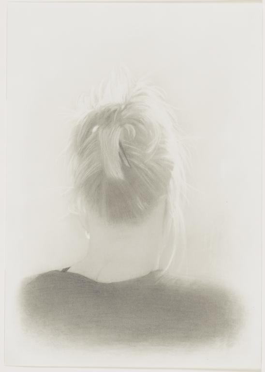 Achterhoofd van een vrouw met opgestoken haar