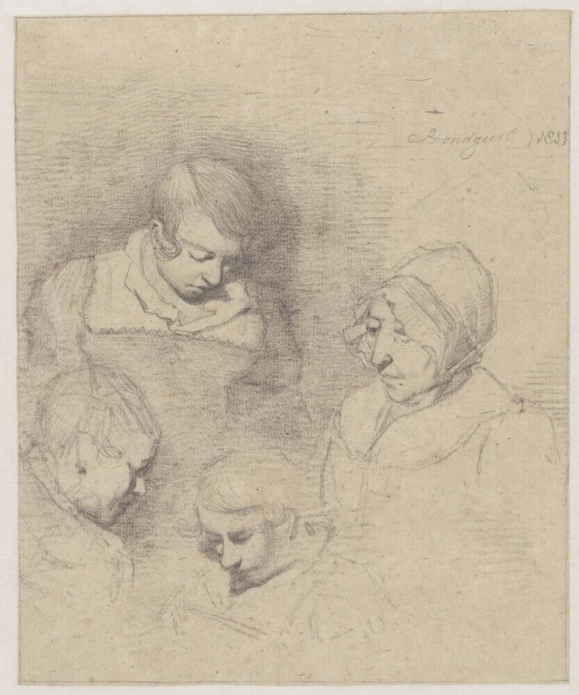 Studies van lezende jongen en vrouw met kapje