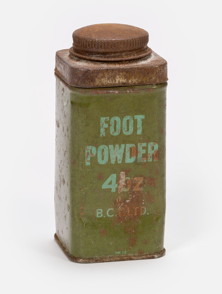 Voetpoeder in metalen blikje