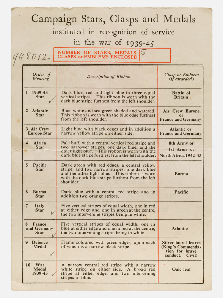 Certificaat van toegekende Britse onderscheidingen v...
