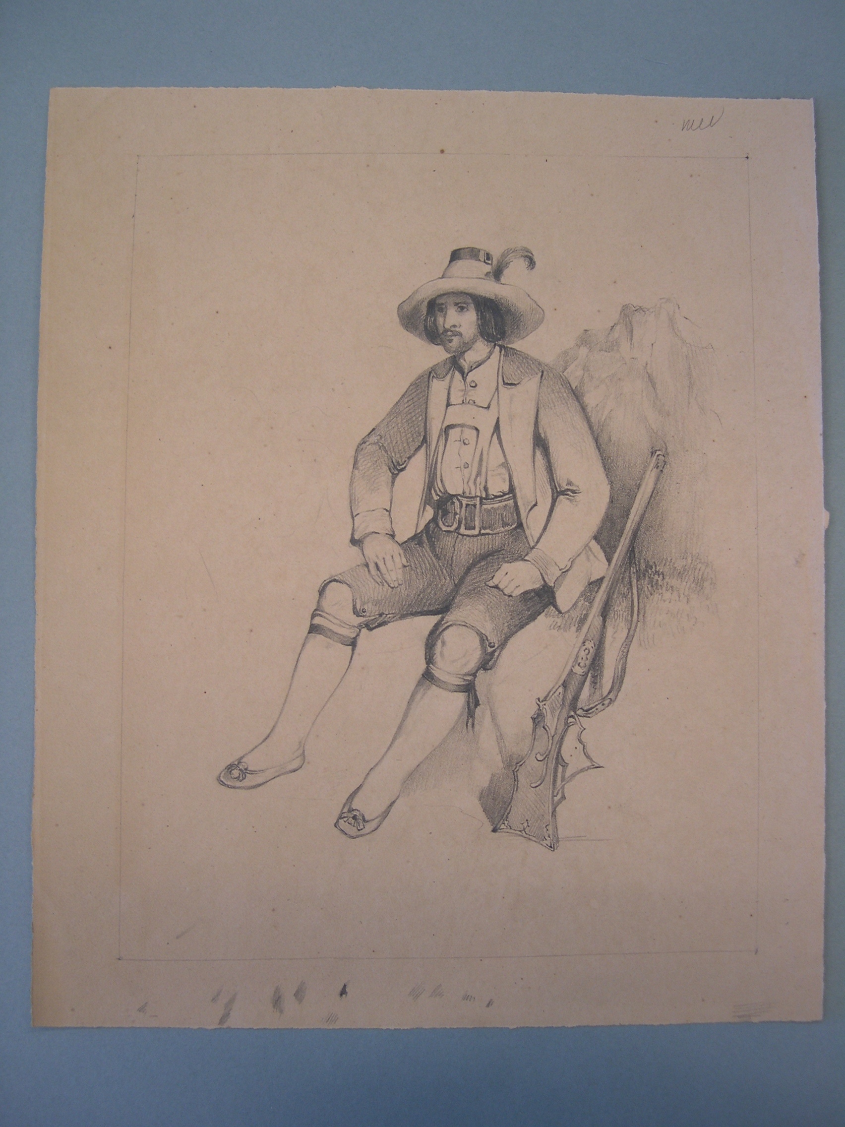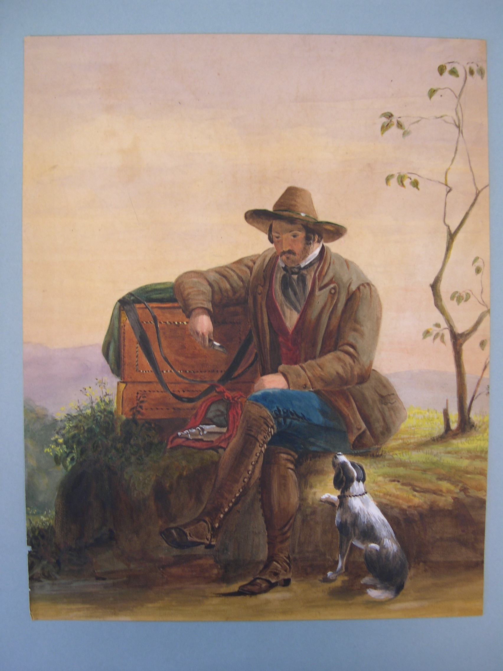 Tekening van jager met hond