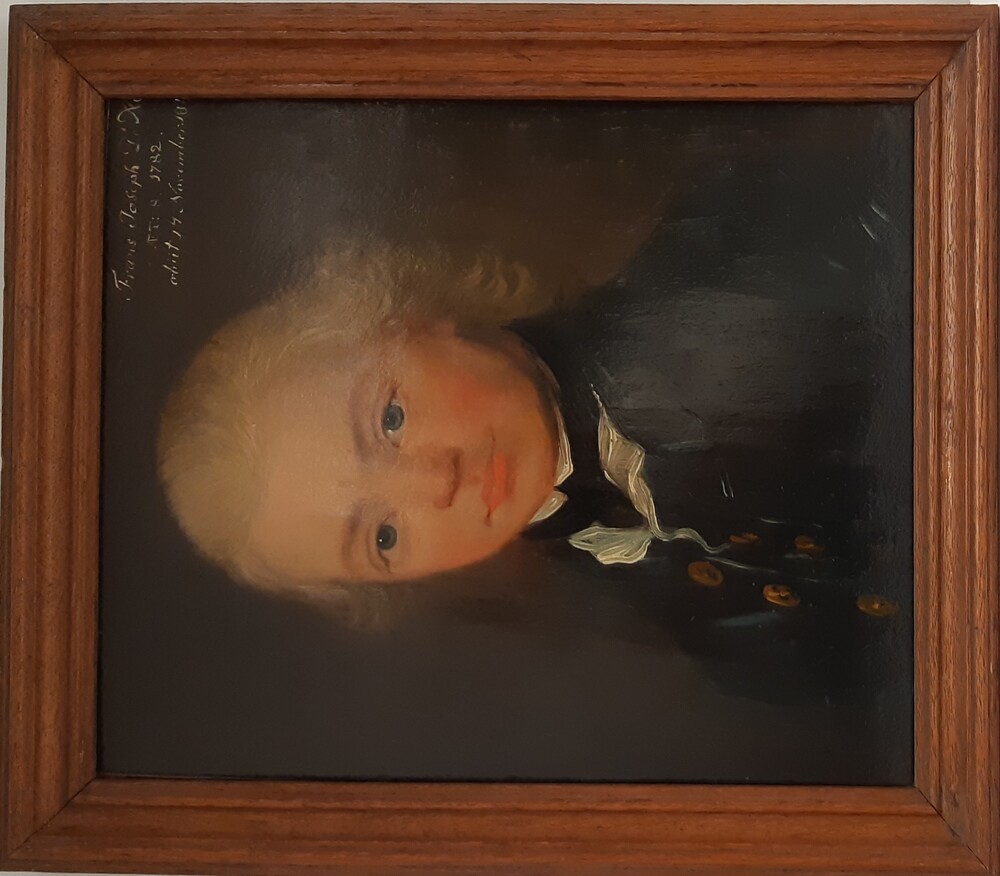 Portretschildering op paneel en in lijst beide van h...