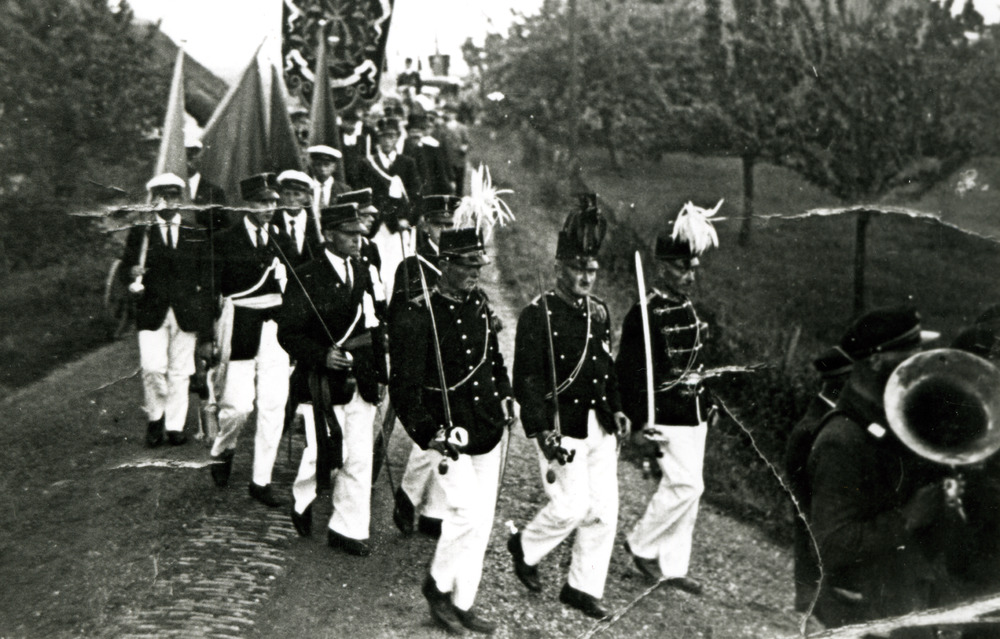 Zwart-wit foto van de schutterij in Herwen 1907