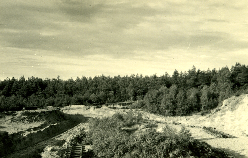 Zwart-wit foto van de zandafgraving in de omgeving v...