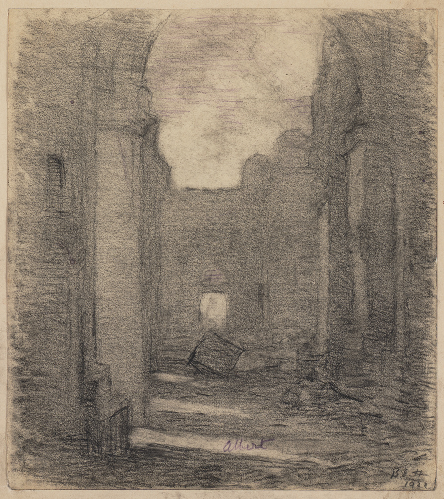 Interieur van de ruïne van de basiliek te Albert, 1922