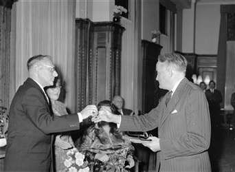 Commissaris van de Koningin Jan Klaasesz (rechts) ne...