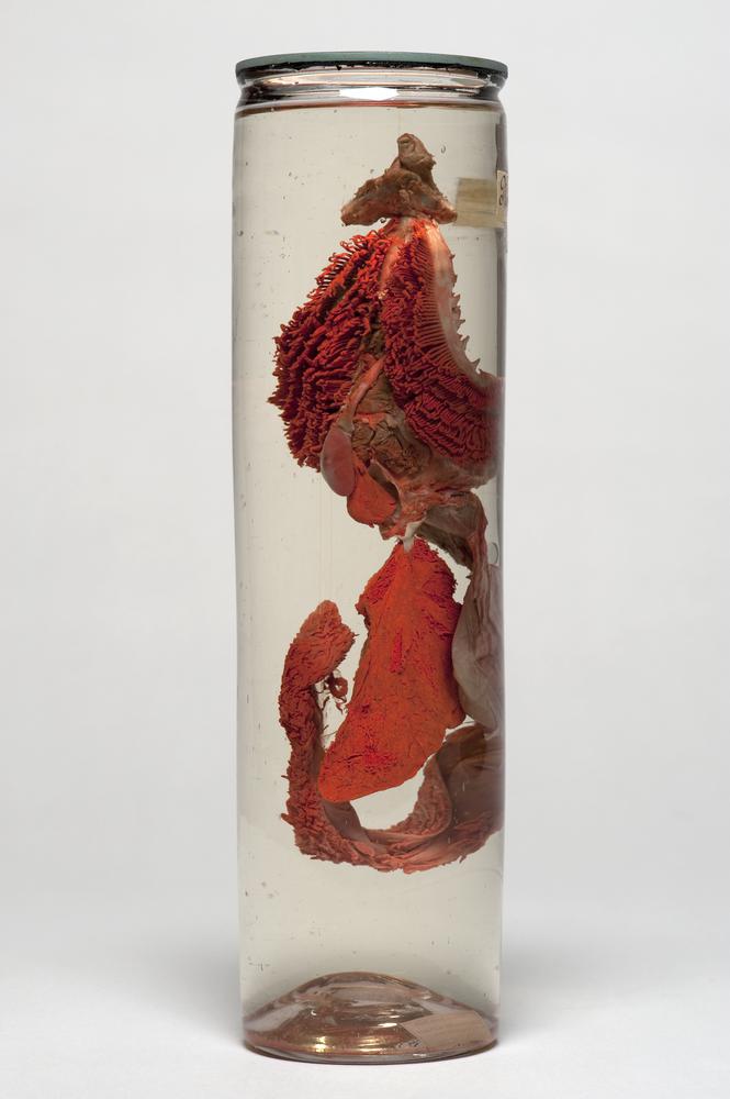 Kieuwen, hart, slokdarmhoofd en ingewanden maag van ...