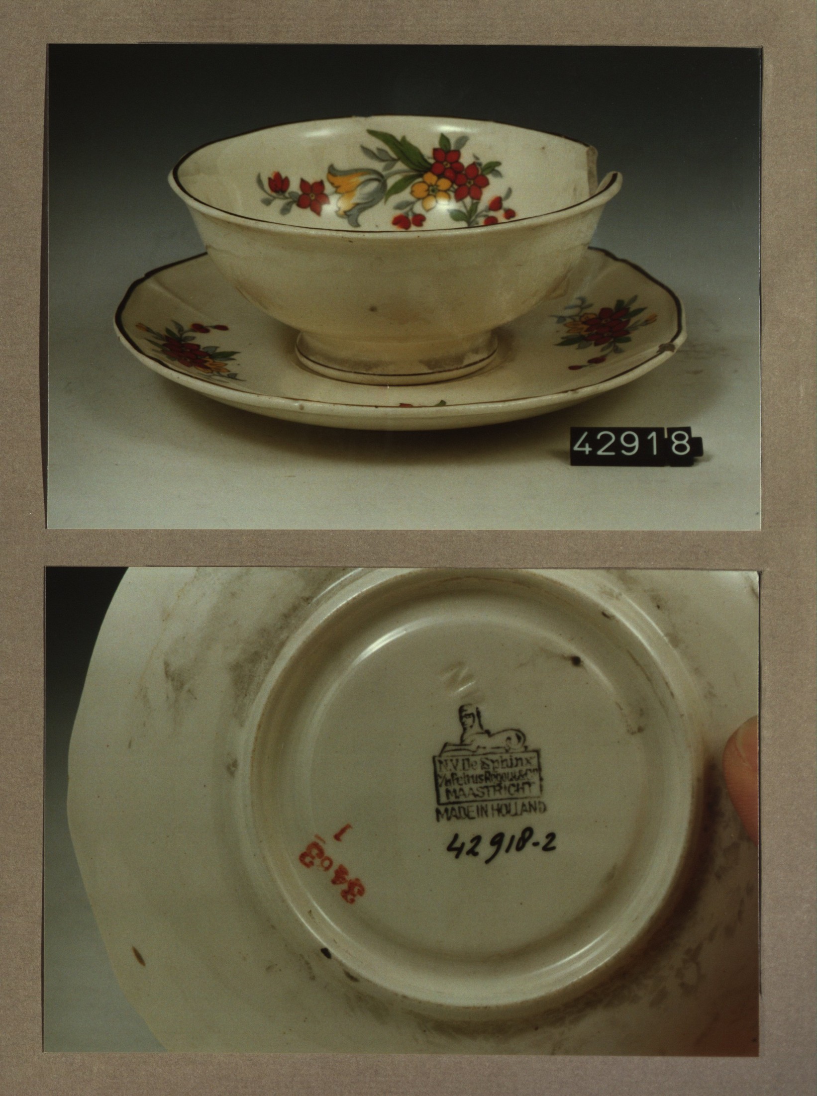 Kop en schotel, model Relief met decor 3463